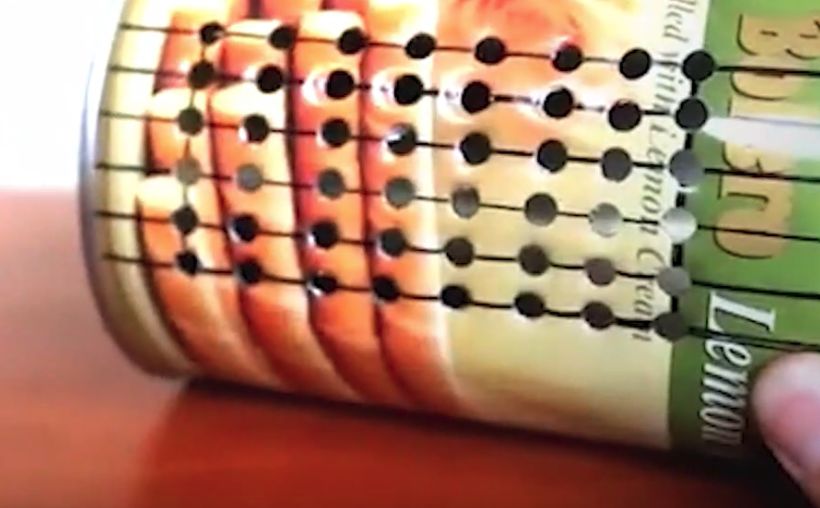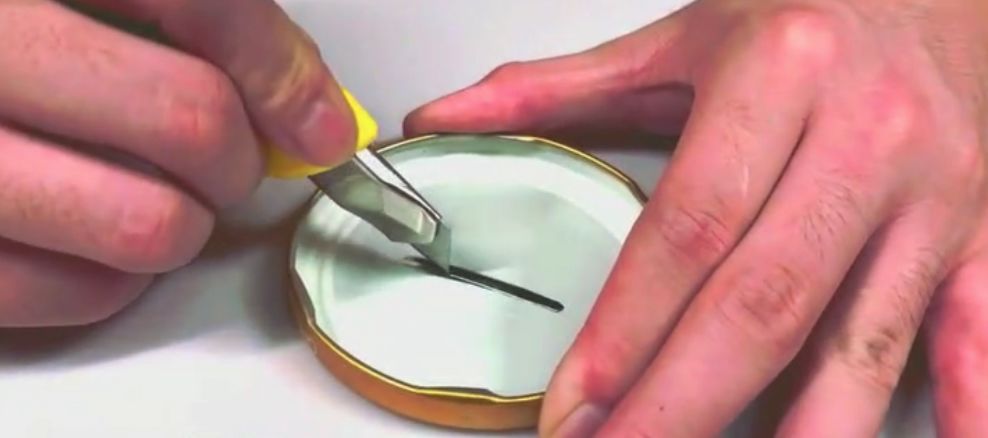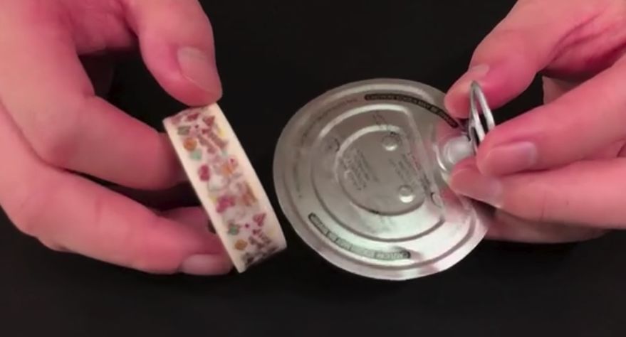 2、给罐头盖的外面包上一层胶带,防止割伤手;