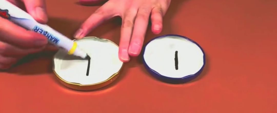 1、先在铁皮罐头瓶上用马克笔标记挖洞的位置;