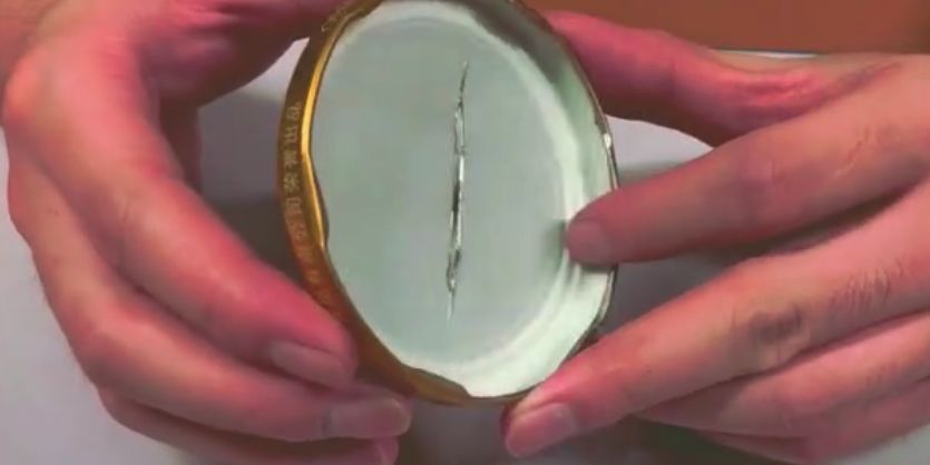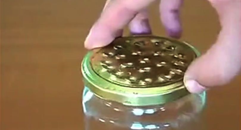 遇到很难拧开的玻璃罐头,可以先把瓶身翻转,用掌心拍打底部三下,让罐头瓶盖附近的密集空气散开,减少压强,瓶盖轻轻松松就能拧开。