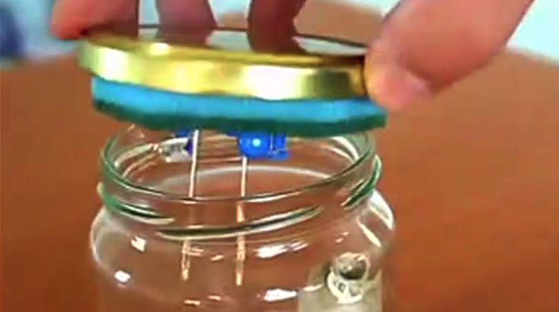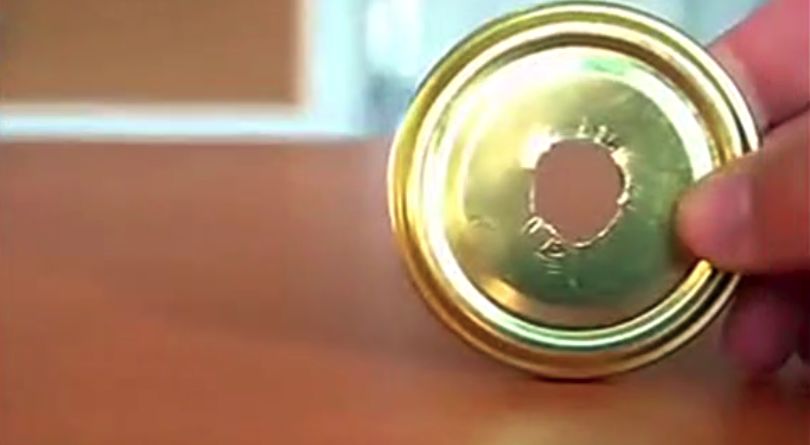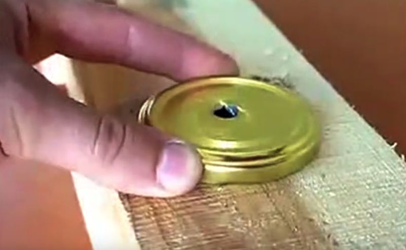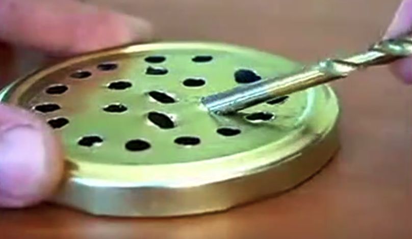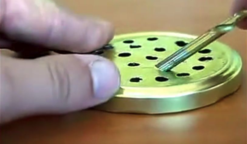 1、用平头起子在罐头瓶盖上戳出很多小孔;