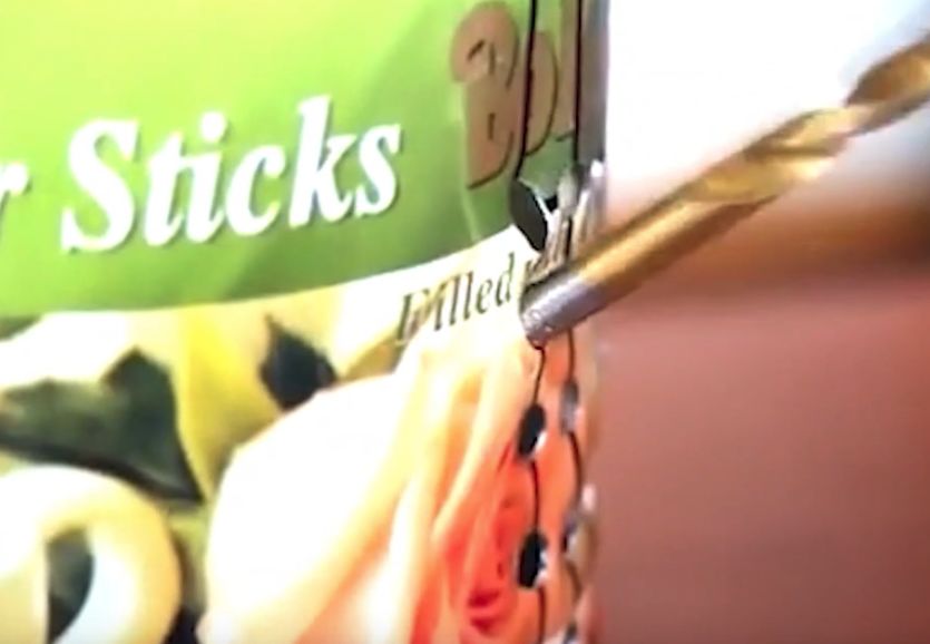 2、再用起子按照同一个方向把小孔撑起,方便刮皮。做完后放在水龙头下冲洗干净;