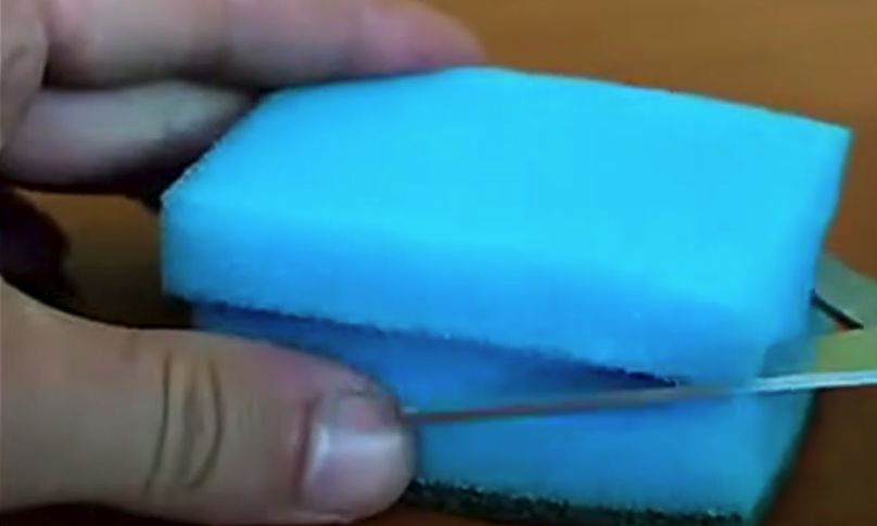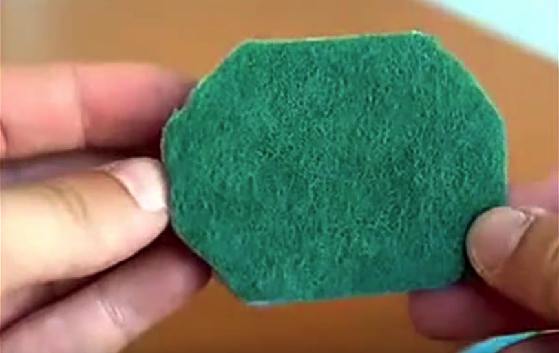 2、取一部分,剪去四个角,使成菱形,海绵最好剪得比瓶盖小点;