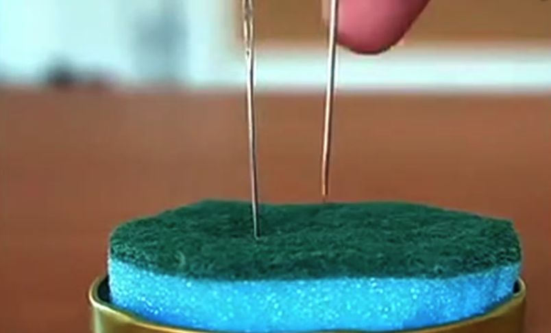 4、粘上海绵,插上针,小型针线盒就做好啦。