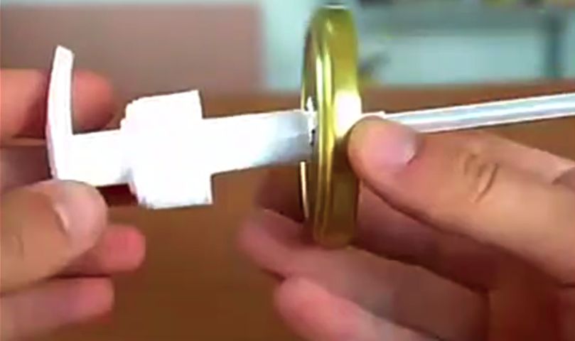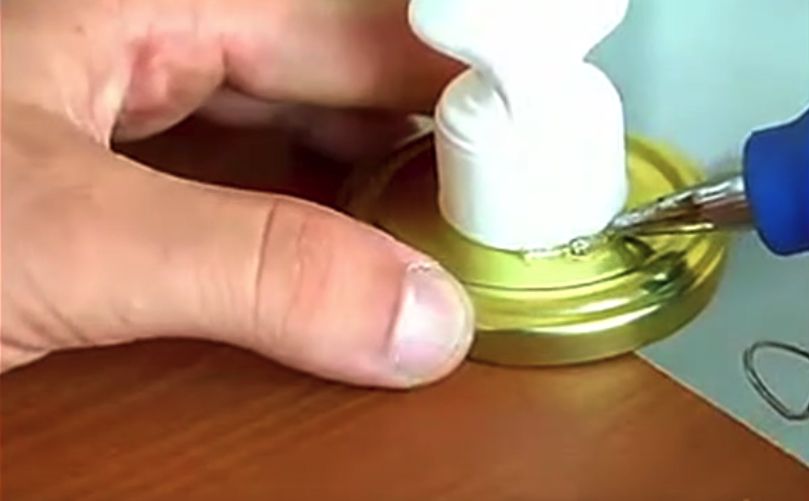 1、按照按压器吸管的大小,在瓶盖上开洞;