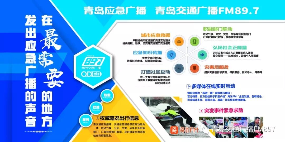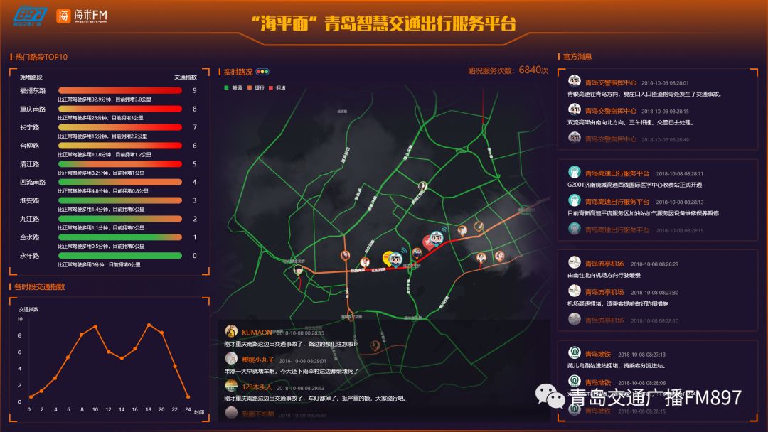 通过“海平面”可视化出行平台,更多及时、有价值的信息除了会继续在青岛交通广播节目中第一时间播出,还在897两微一端中分别用资讯推送、信息滚动、言论评说、图文解析、热点关注等方式呈现,使得交通信息不仅仅只能在广播中听,还可以通过新媒体平台进行分发,提供更有效的出行服务。