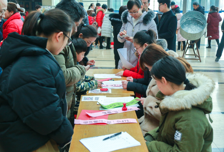 猜完灯谜,还可以抽奖。抽奖区人头攒动,人们拿着猜出的谜面排队等待抽奖。“我抽中了一等奖。”王明阳开心的与伙伴分享着喜悦,他称去年他抽了个二等奖,今年抽中了一等奖,领到一本书籍,希望开学后,他可以更加努力学习。