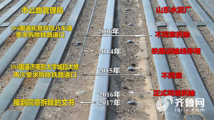 济南市公路管理局养护处处长王磊回应,多年来,公路部门多次协调,希望拆掉104国道上的这个道口,但是都未协调成。早在2006年,国道104拓宽成双向八车道的工程,公路部门就协调过山东水泥厂,拆掉铁路道口。当时铁路专用线还没有停用,厂方没有同意。10年之后,2015年104国道济南到长清段大修,公路管理局再次找到厂方,水泥厂还是没有同意。