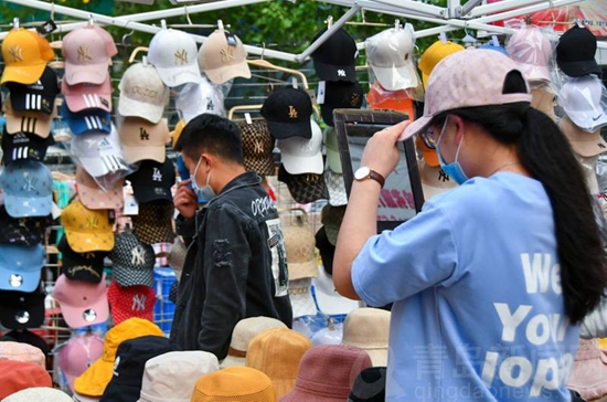 29日,在重新开放的李村步行街夜市上,年轻人逛街、淘货、尝小吃,感受着夏夜青岛的悠闲惬意和温馨浪漫。夜市有严格的疫情防控措施,进入市场要佩戴口罩,测量体温,扫码。
