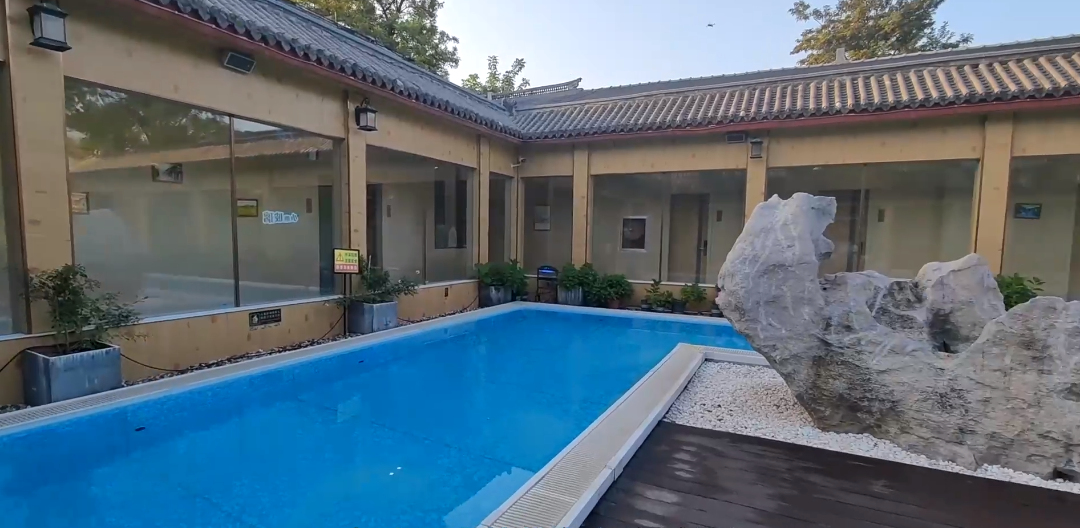 四合院落、两层小楼,榻榻米房、汤泉房,还有带独立泳池的小院。住特色汤泉房,早餐代买当地特色、每天排巨长队的老槐树煎包。