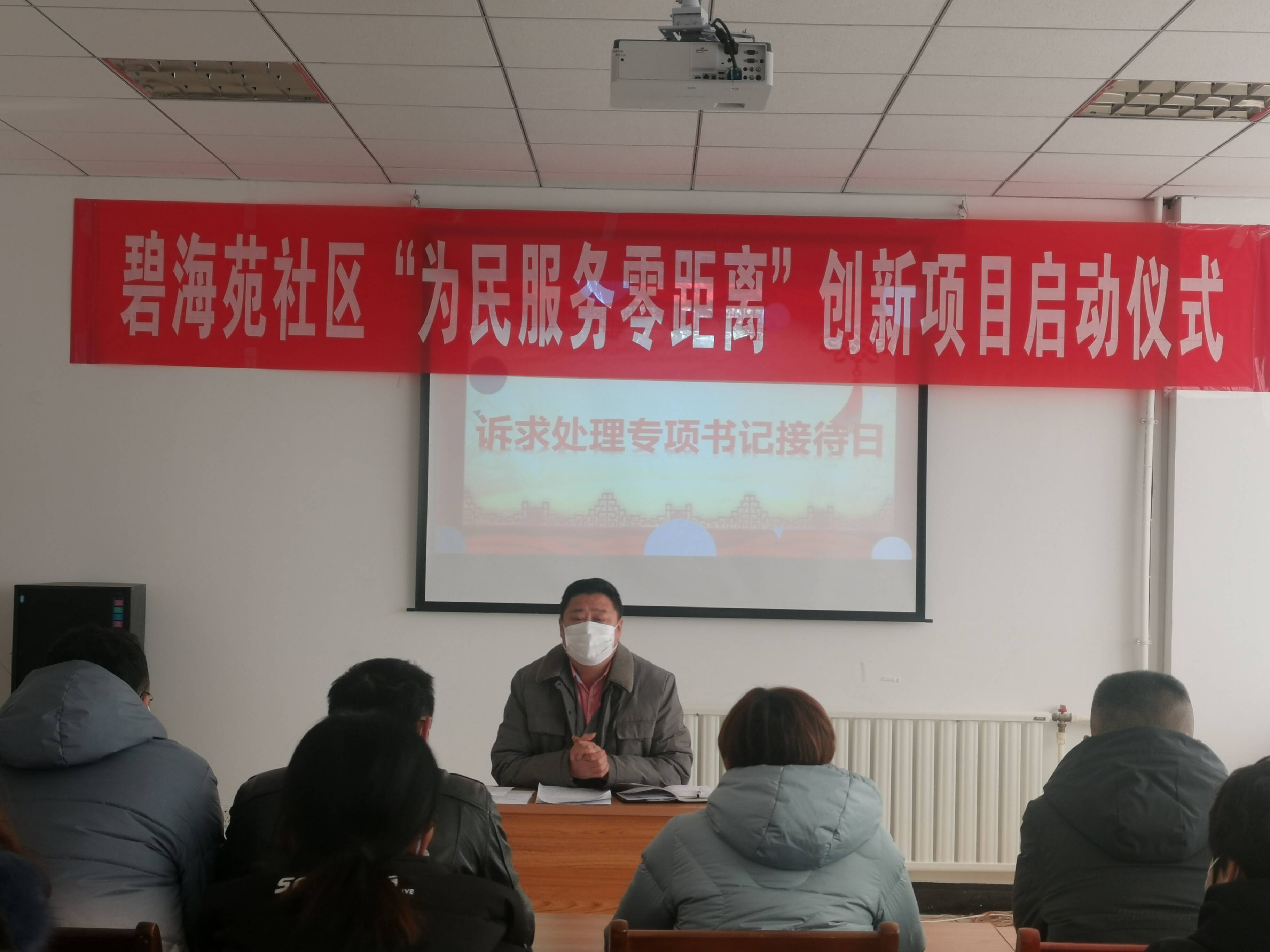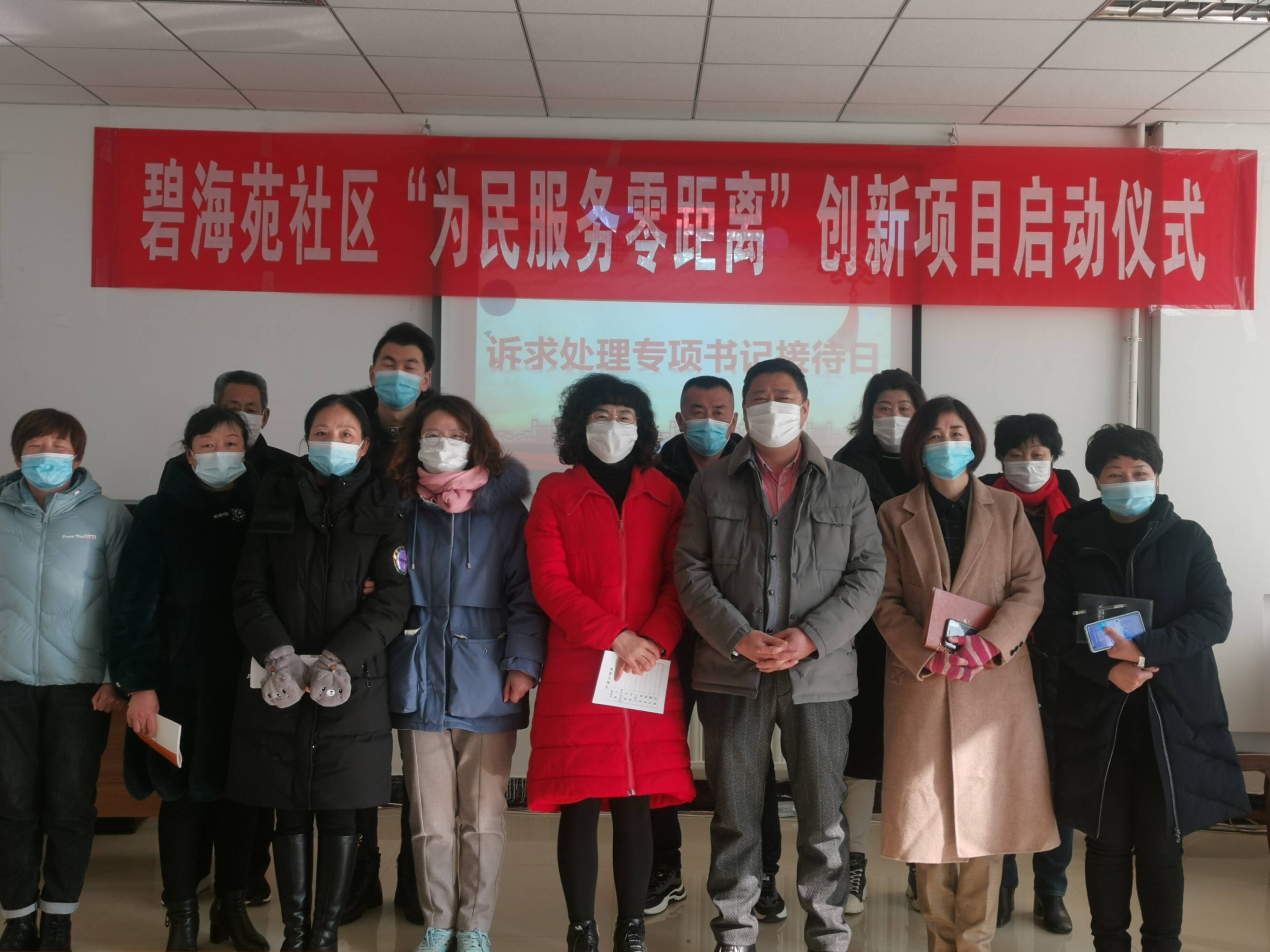 2022年2月16日,威海乳山市滨海新区碧海苑社区召开“为民服务零距离”创新项目启动仪式,参加此次启动仪式的有碧海苑社区全体工作人员、辖区全体物业负责人。