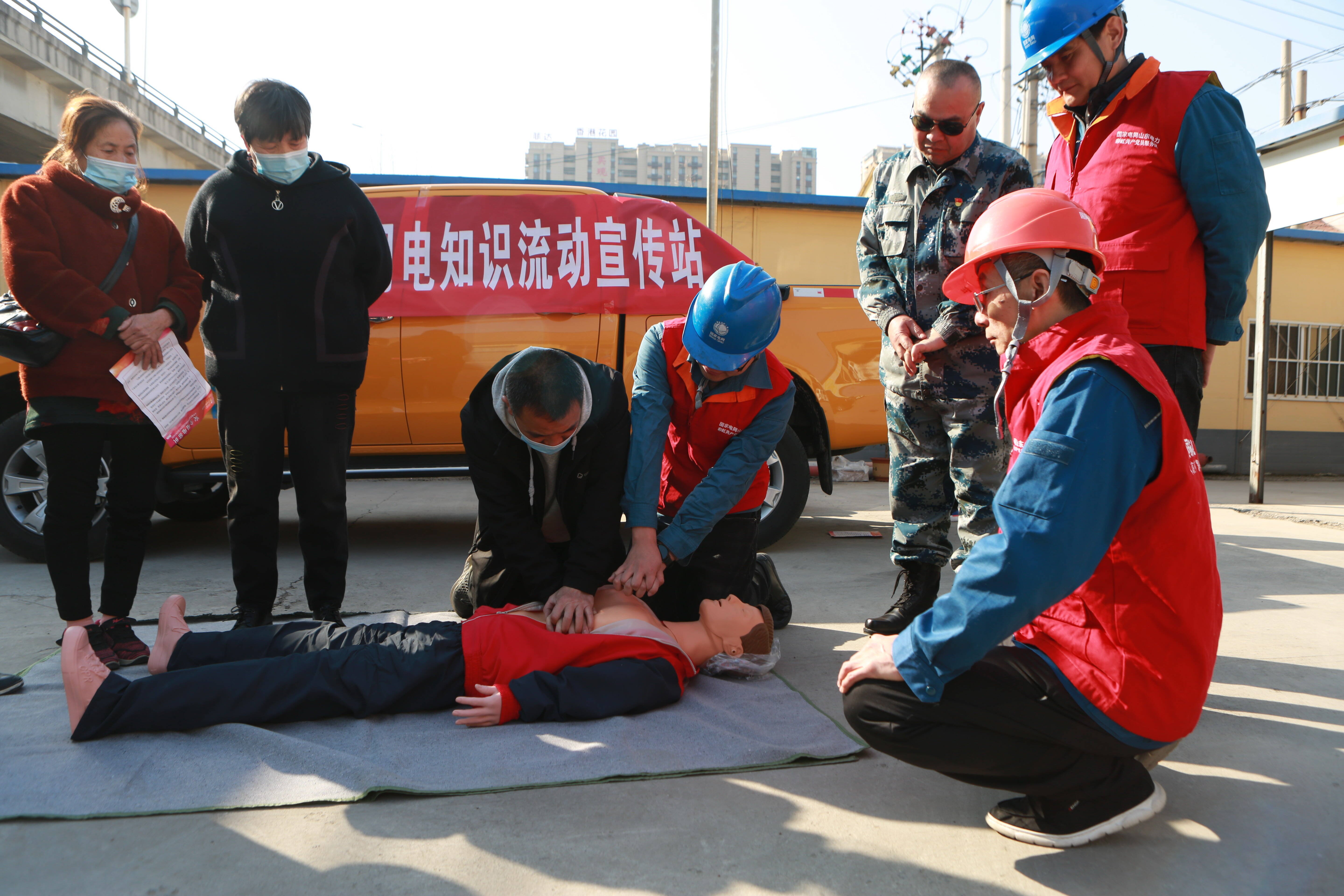 为了让居民真实感受触电的严重性及急救方法,该公司城区供电中心支部党员还将橡皮人搬到社区办公大院,模拟触电场景,手把手教授了触电急救心肺复苏法的步骤和注意事项。“发生触电时,必须立即急救,急救分三阶段进行,即:人体脱离电源;现场急救;送医院治疗。”该中心支部党员李胜胜说。他告诉居民,“在现场急救过程中,若触电者没有失去知觉、心脏跳动仍有呼吸时,应使触电者保持安静,不要走动。如果心脏仍跳动,呼吸也在进行,但触电者已失去知觉,这时应让触电者平卧,解开衣服,打开窗户,注意保暖、也可摩擦全身使之发热;若触电者心脏仍跳动,呼吸已停止,应采用‘口对口’或‘口对鼻’的人工呼吸法进行抢救。”随后,该社区的居民进行了实操演练。