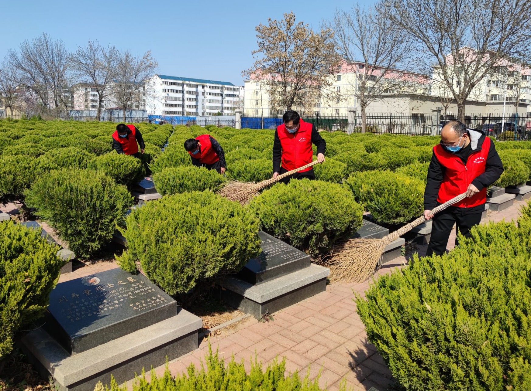 “我们组织了5名志愿者,谨代表广大烈属和社会各界人士前来祭扫,纪念革命英烈。”庆云县退役军人志愿服务队队长杜国真说。4月1日,志愿者来到纪念馆,在烈士陵园人民英雄纪念碑前庄严肃立、默哀致敬,并向人民英雄敬献花篮,深切缅怀革命烈士,表达对烈士的崇敬和哀思。随后,志愿者们擦拭墓碑、修剪绿植、清理园区卫生。“我们还提供免费代祭扫服务,并实时向烈属发送祭扫图片、视频,及时回应家属关切。”参加祭扫的志愿者说道。