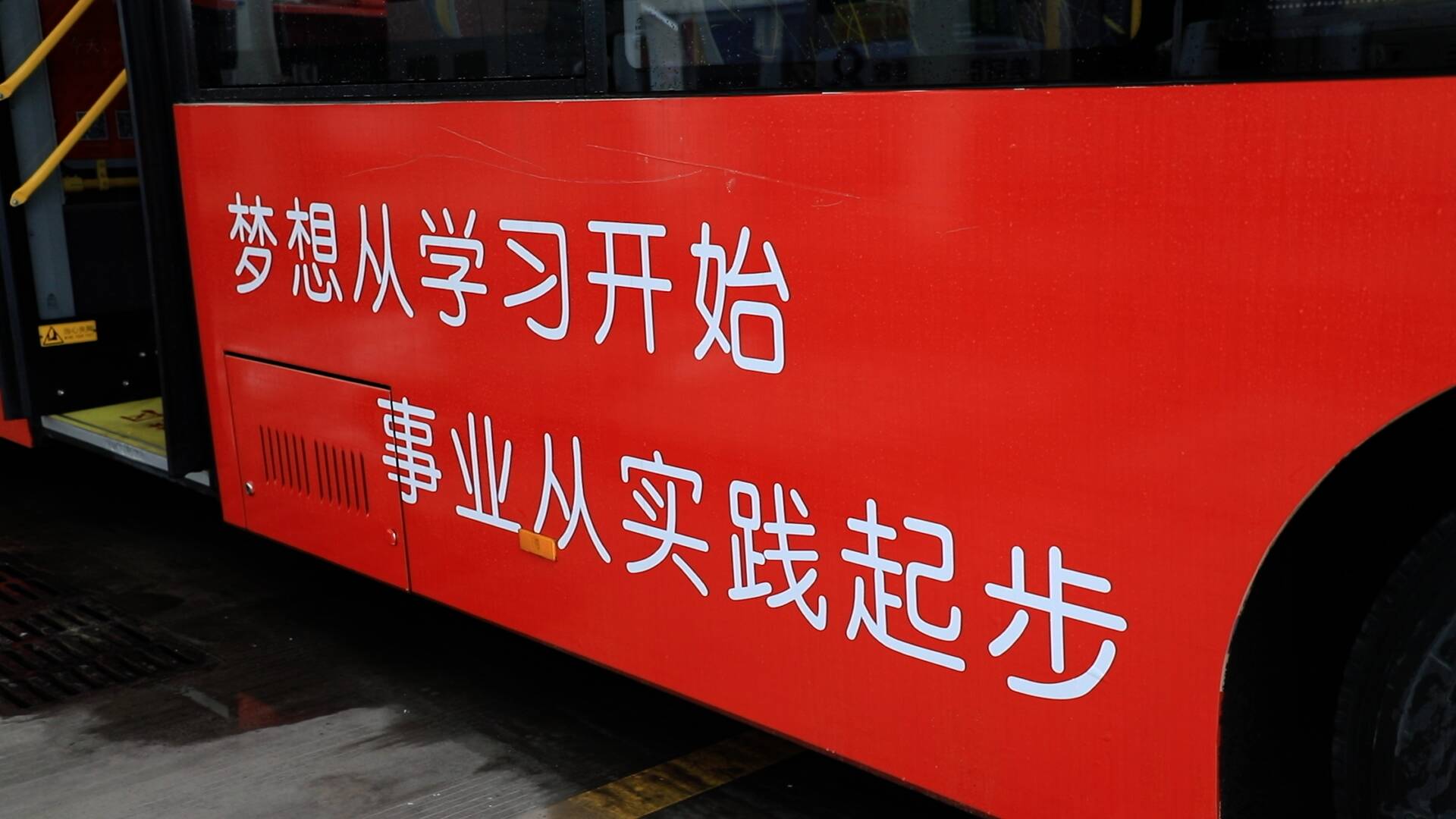 记者看到,“学习强国”主题公交车以大红色为底色,车厢里随处可见“学习强国”的宣传口号、“学习强国”App下载、注册及使用教程等内容,学习氛围浓厚。