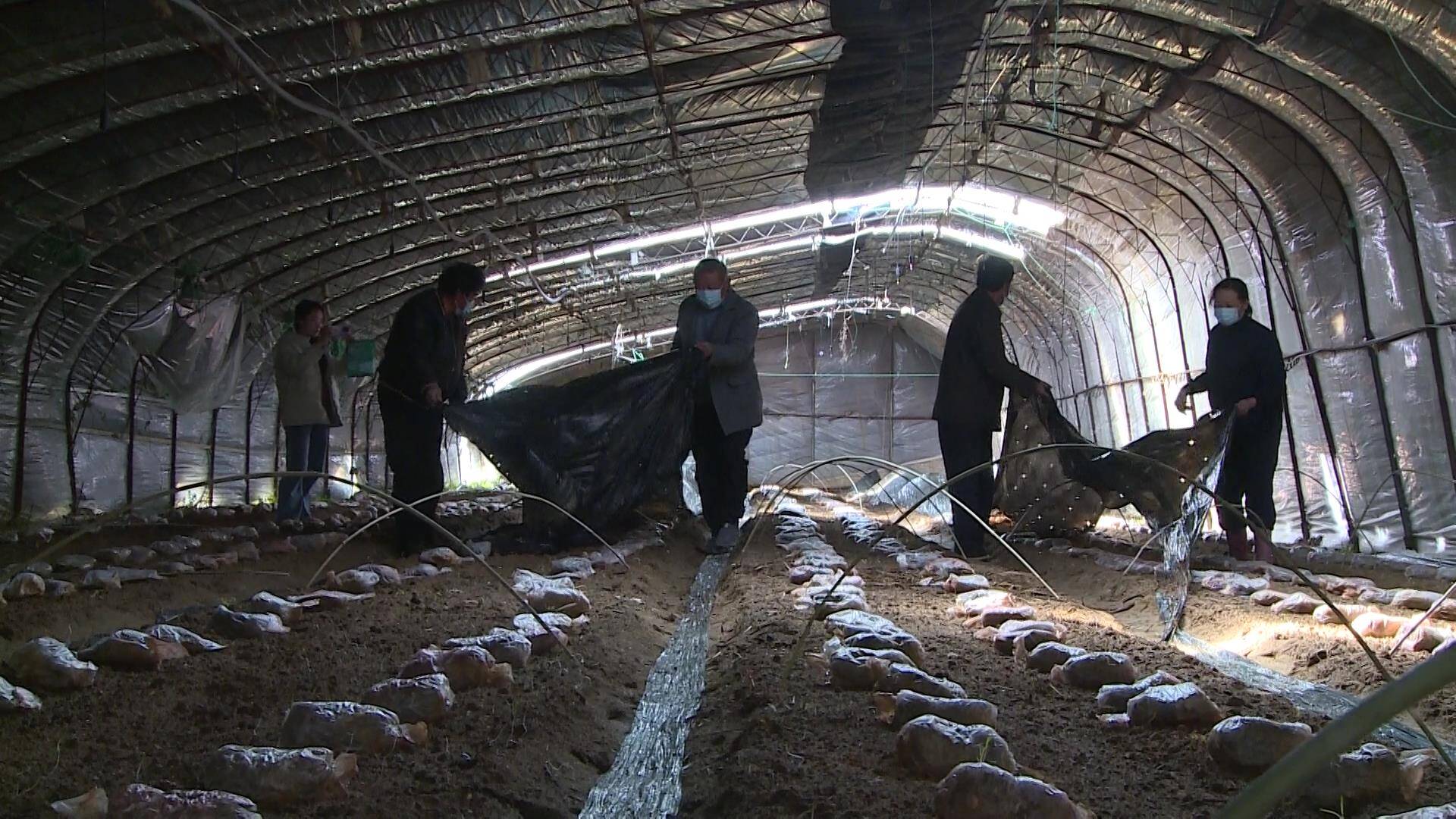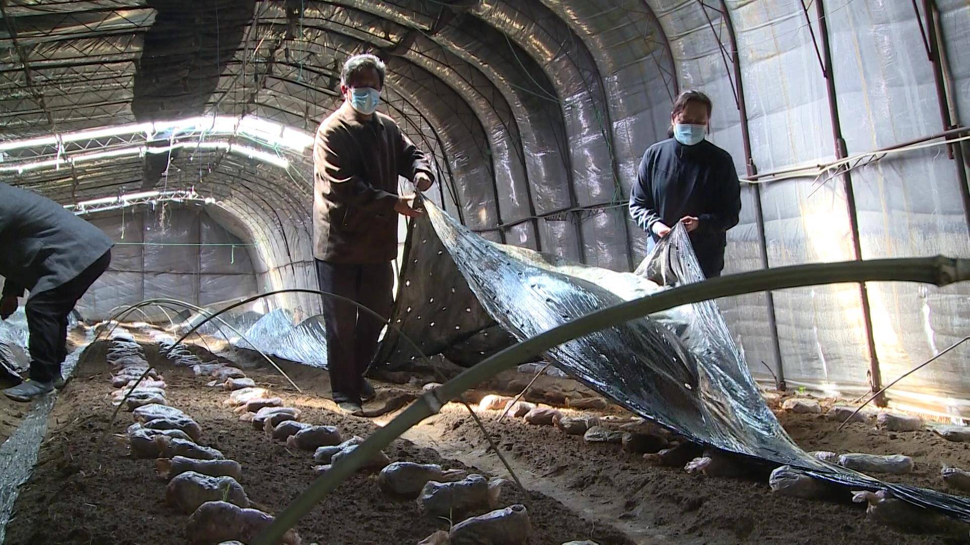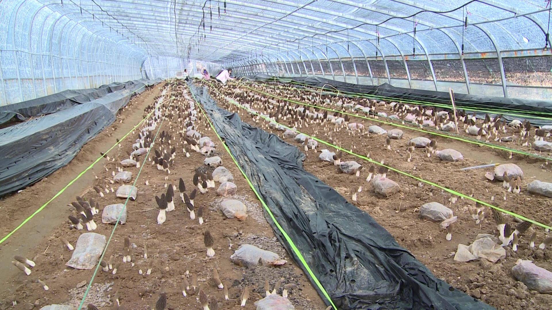 在羊肚菌种植过程中,院后村发现羊肚菌存在不能重茬连种的情况,限制了亩产量。于是村两委多次外出学习羊肚菌种植新技术,最终决定采用“闷棚法”解决羊肚菌的重茬障碍,让羊肚菌做到不用歇棚,当年采摘完,当年可继续栽种。“我们用拖拉机把棚里的土地耕了一遍, 长草就翻,翻完了之后我们就喷水,再用油纸把棚盖上,让棚里温度达到六七十度,就这样连续做了三次,能把大棚内上一年的菌处理掉,今年的产量预计比去年好得多。”杨秀丽说道。