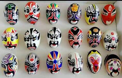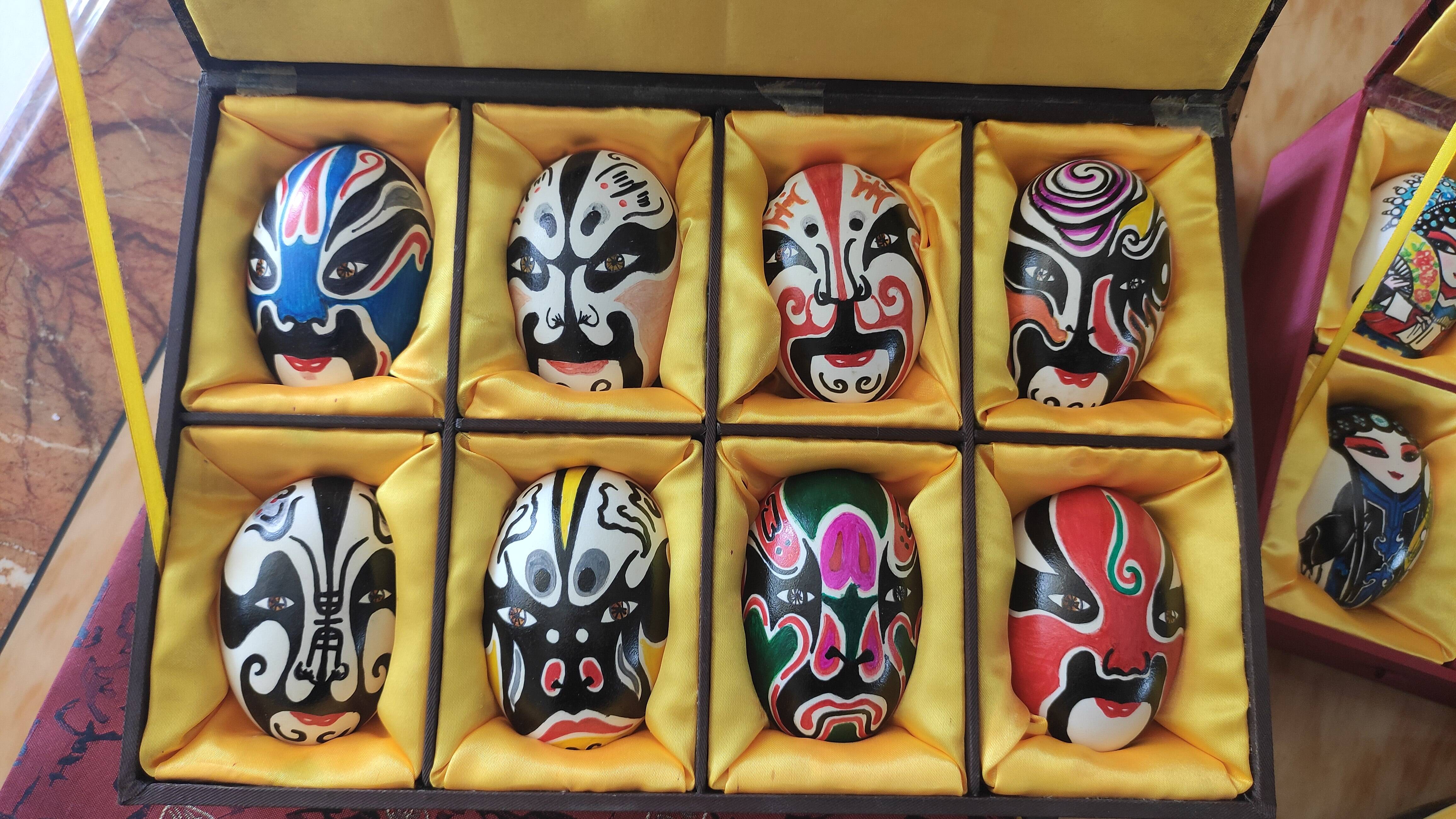 费县蛋壳脸谱,又称蛋壳画,将传统戏曲人物的脸谱绘制在特殊处理的蛋壳上,多数正面为戏曲脸谱,背面为小篆书法标注脸谱名称等信息,是一种集绘画和书法为一体的传统艺术。