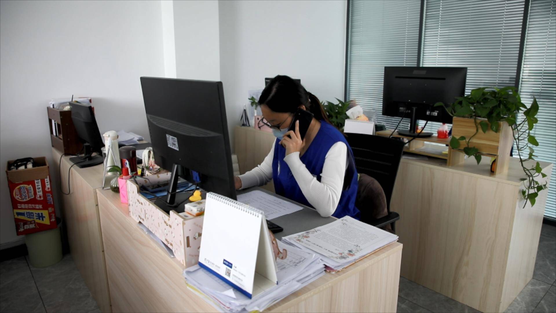 这位正在给居民打电话确定信息的90后小姑娘叫于怡然,几年前来到和平街道桃园社区,成为一名网格员。如今在这个岗位上已经干了三年,当下,疫情防控期间,她和同事主动加班加点,假期值守在岗位,给居民登记入淄返淄信息,协助开展核酸采样工作。她向记者介绍道:“作为网格员,需要随时了解居民的住户信息是否有变化,每天对封控户进行入户检查。另外,居民从外地回淄报备时,我们需要给他们解答入淄返淄的相关政策以及是否需要居家隔离等问题。封控期间,如果居民有需要生活物资,我们也会入户送。”