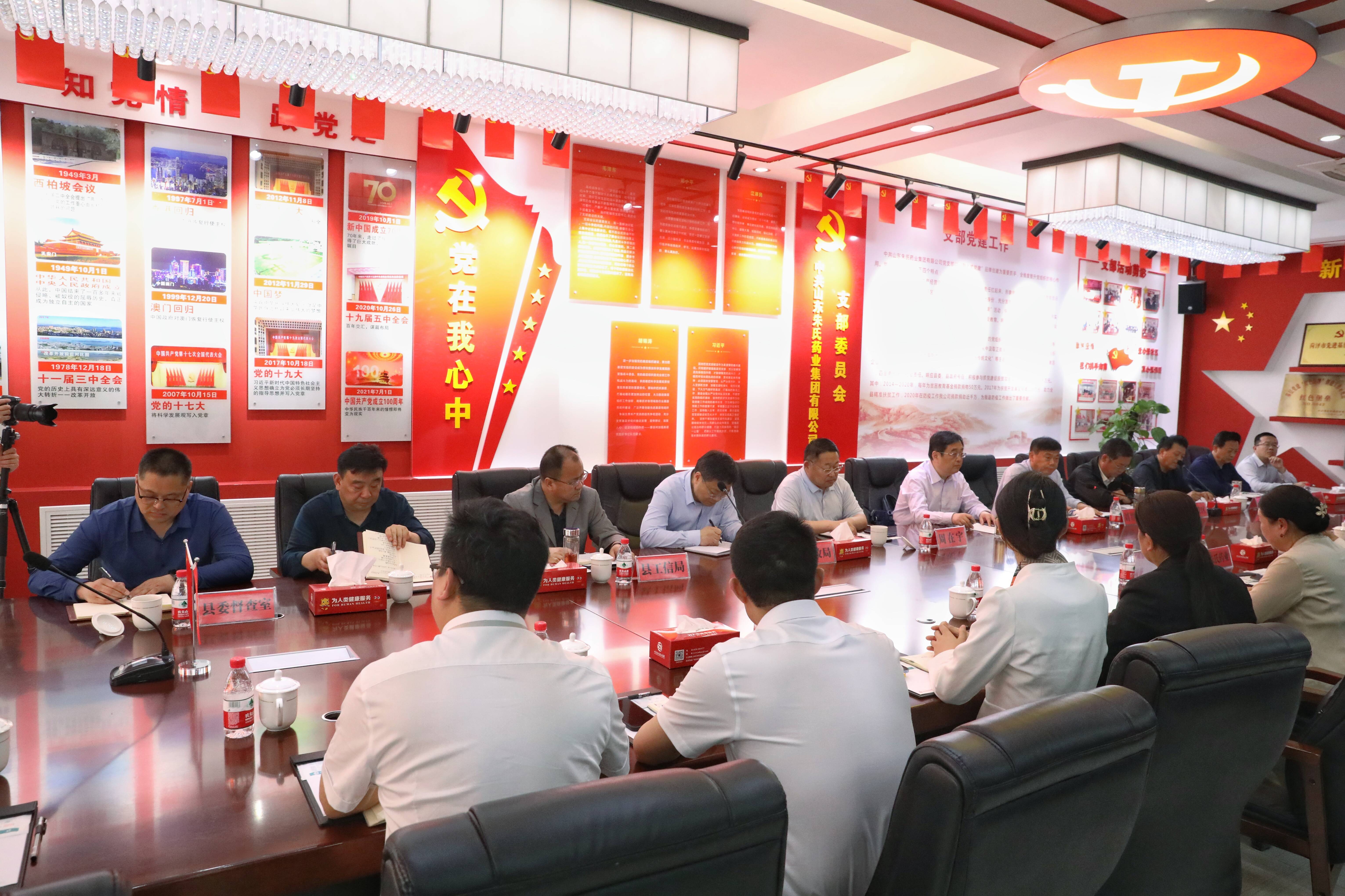 4月27日,菏泽市单县县委书记耿振华带领包项目县级领导、相关职能部门,利用半天的时间,深入县重点企业朱氏药业集团公司深度调研。实地走访了公司生产车间、研发平台、活动阵地,与基层一线工人交流,与科研人员座谈,深入了解企业生产经营、科技研发、市场营销和项目建设情况。随后,在集团公司召开了座谈会,听取了集团董事长朱坤福的汇报,职能部门负责人对有关政策进行了解读,对企业发展存在的问题现场承诺、限时解决。