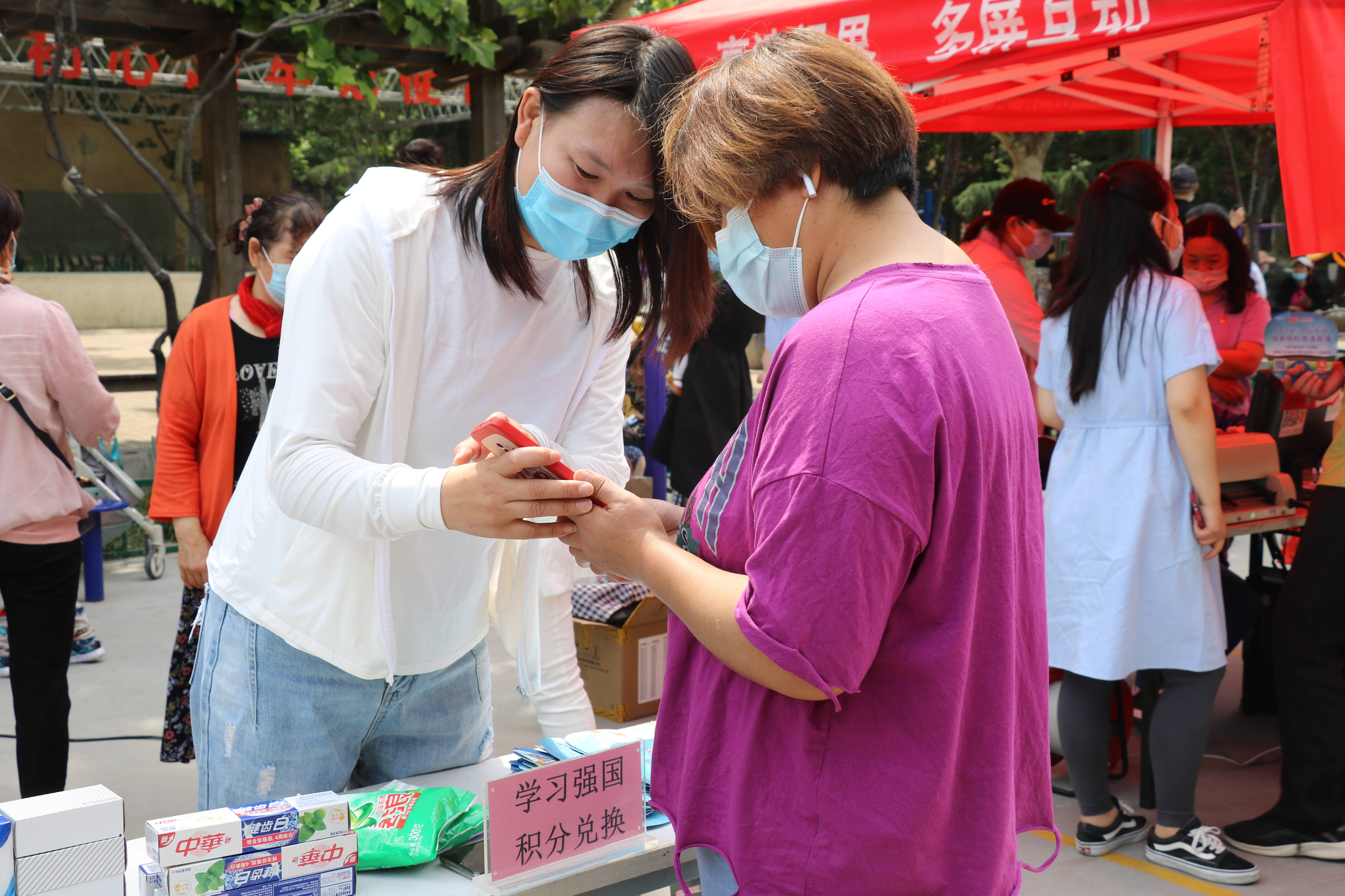据了解,为了丰富“学习强国”平台的宣传推广途径,和平街道还设置了“学习强国”流动打卡点,结合积分兑换、宣传展示等方式,促进“学习小天地”发挥“强国大作用”。积分兑换的活动现场,小区“学习达人”向工作人员出示了自己的学习积分,兑换了卫生纸、洗衣粉、扇子等日常用品,并在“打卡点”处合影留念,带动了周边更多党员、群众参与使用“学习强国”的积极性和主动性。