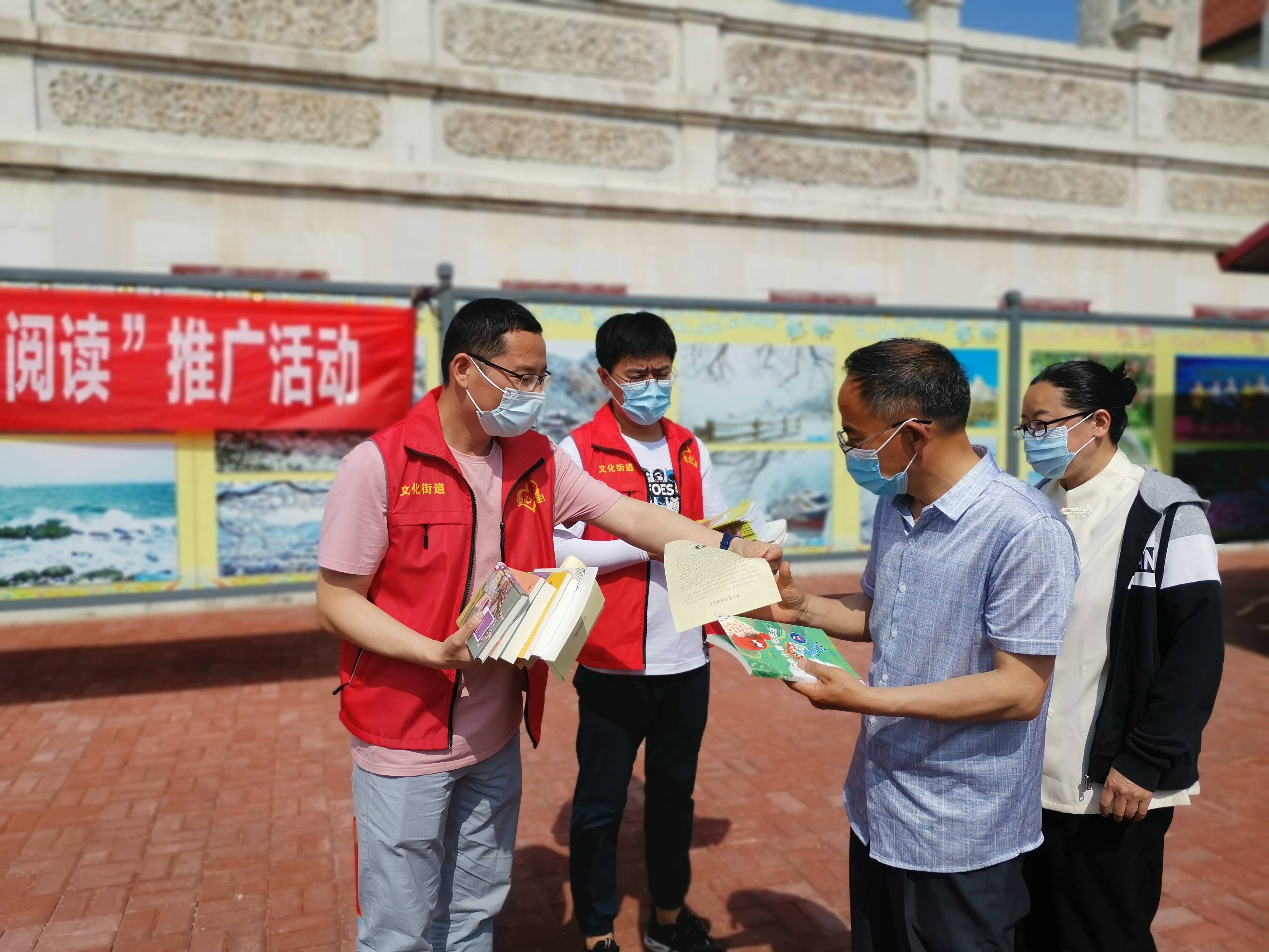 活动现场,社区志愿者向过往居民发放《全民阅读倡议书》、图书,宣传阅读的好处,建议参与到全民阅读活动中的居民到区图书馆办理借书卡,开阔眼界,增长知识。