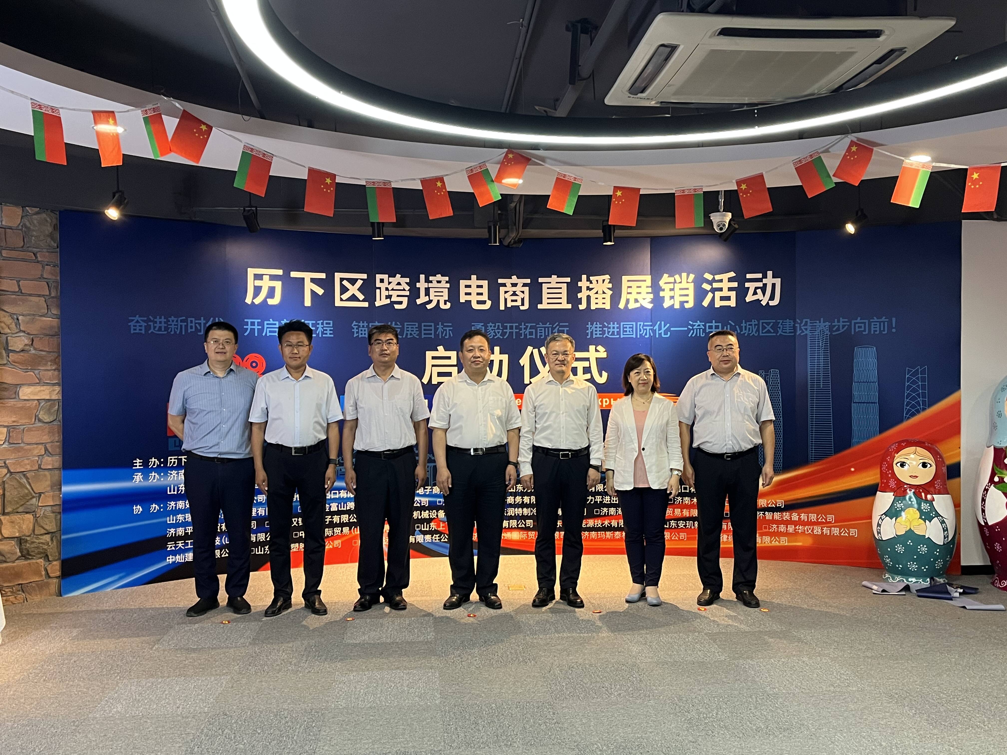齐鲁网·闪电新闻6月9日讯 6月9日,济南市历下区跨境电商直播展销活动启动仪式在国商跨境电商产业园的丝路众恒跨境贸易展览馆举行。