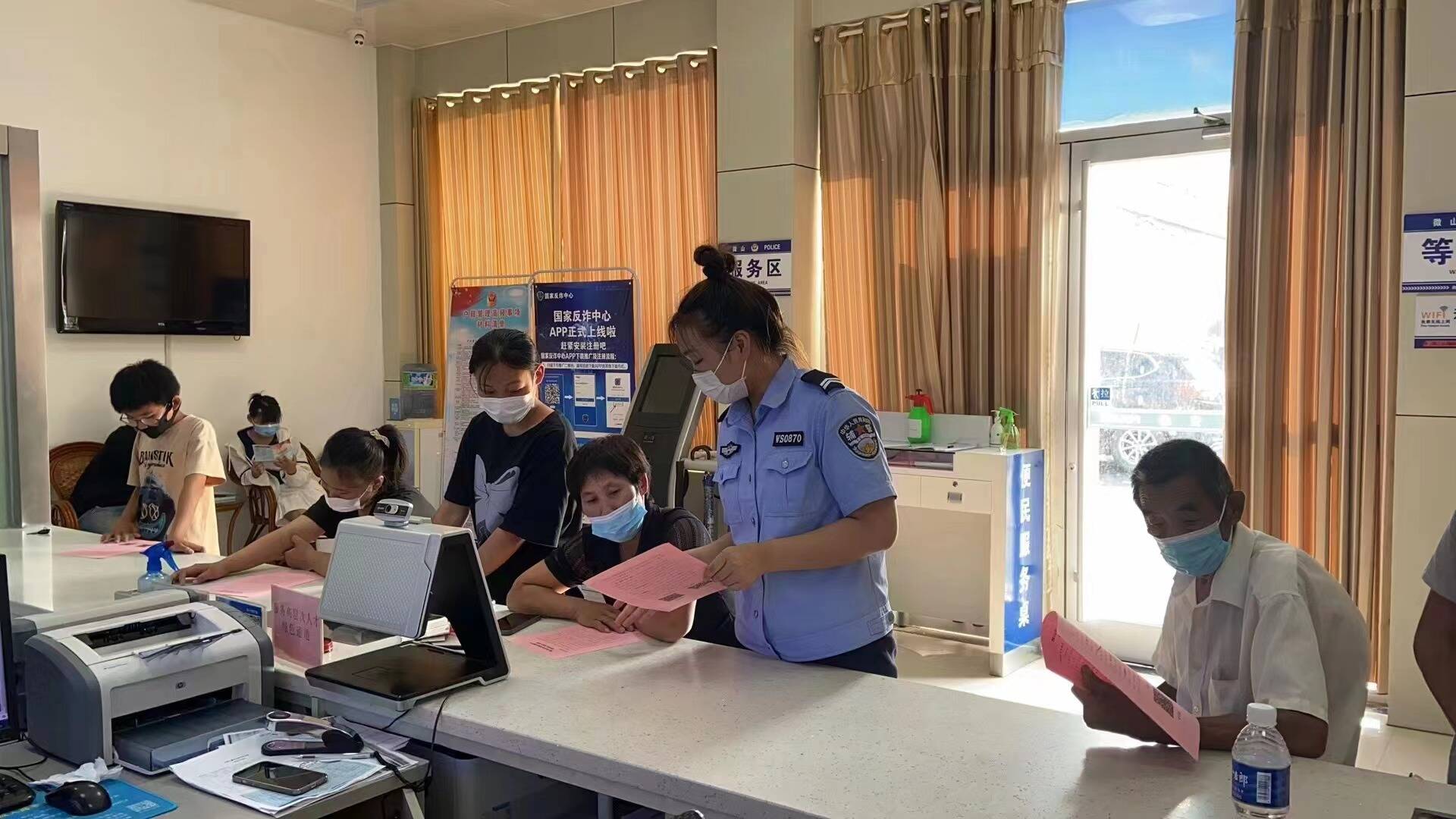 户籍窗口民警在做好窗口业务办理的同时,积极向群众开展防范电信网络诈骗宣传,讲解常见电信诈骗的方式和预防方法,推广安装国家反诈中心APP,手把手教会群众如何使用反诈APP,坚决守好群众的“钱袋子”。