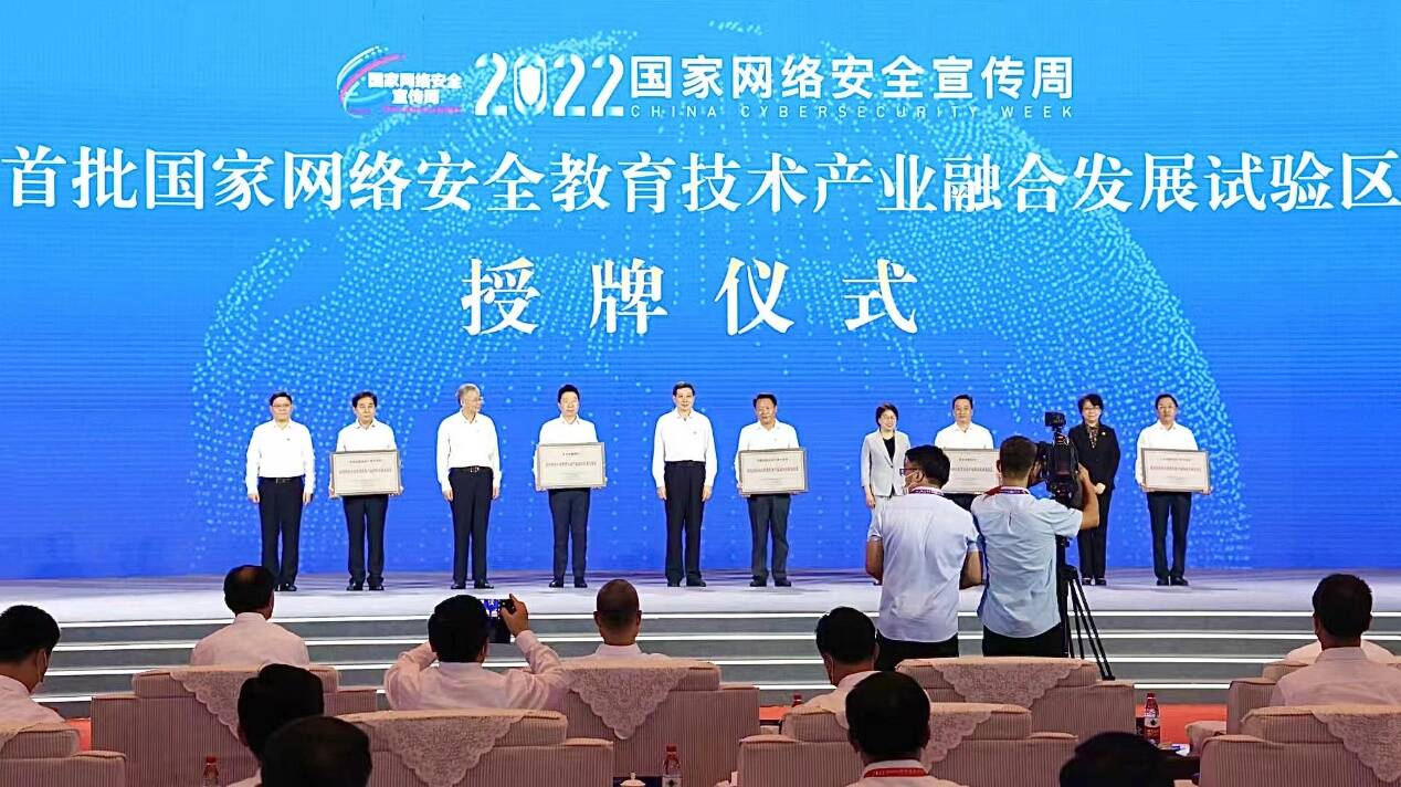 齐鲁网·闪电新闻9月5日讯 2022年9月5日,国家网络安全宣传周启动仪式在安徽合肥举行,为期7天的国家网络安全宣传周正式拉开帷幕。此次国家网络安全宣传周由中央宣传部、中央网信办、教育部、工业和信息化部、公安部等十部门联合举办。启动仪式上,揭晓了首批国家网络安全教育技术产业融合发展试验区。市委常委、副市长,济南高新区党工委书记、管委会主任王宏志现场接受授牌。