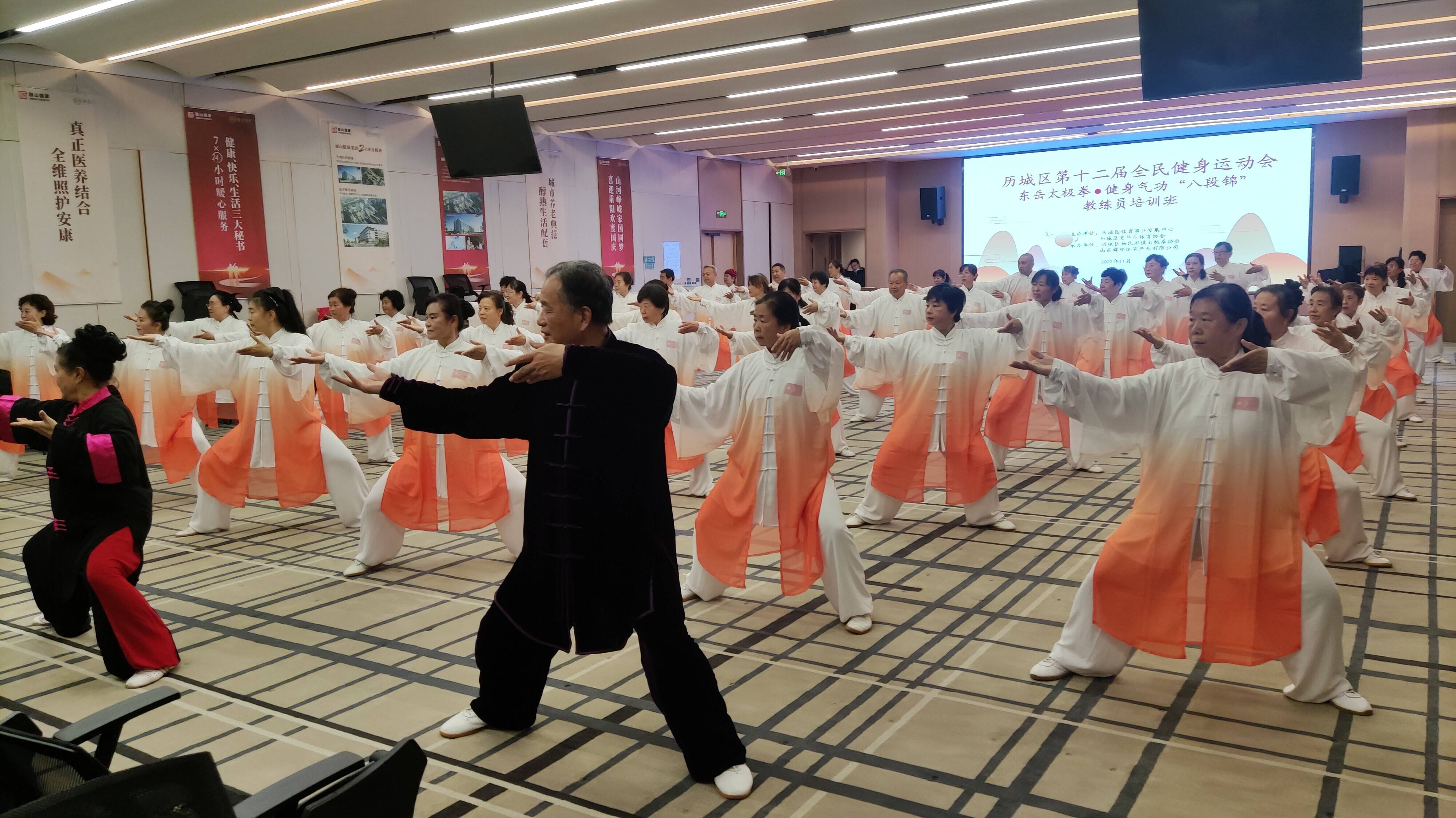 齐鲁网·闪电新闻11月5日讯 为进一步提升历城区健身网点教练员水平,加强队伍专业建设,更好地服务群众,提升群众满意度,11月5日,济南市历城区第十二届全民健身运动会“东岳太极拳·健身气功‘八段锦’教练员培训班”,在明湖国际·槿椿颐养中心会议厅成功举行。