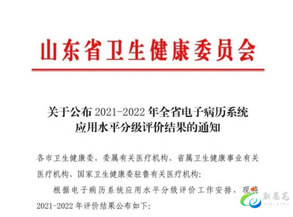 齐鲁网·闪电新闻12月12日讯 近日,山东省卫生健康委员会对2021-2022年全省电子病历系统应用水平分级评价结果进行公布。济南市莱芜人民医院顺利通过电子病历系统应用水平分级评价四级评审,标志着济南市莱芜人民医院在信息化及精细化管理上又上了一个新台阶。