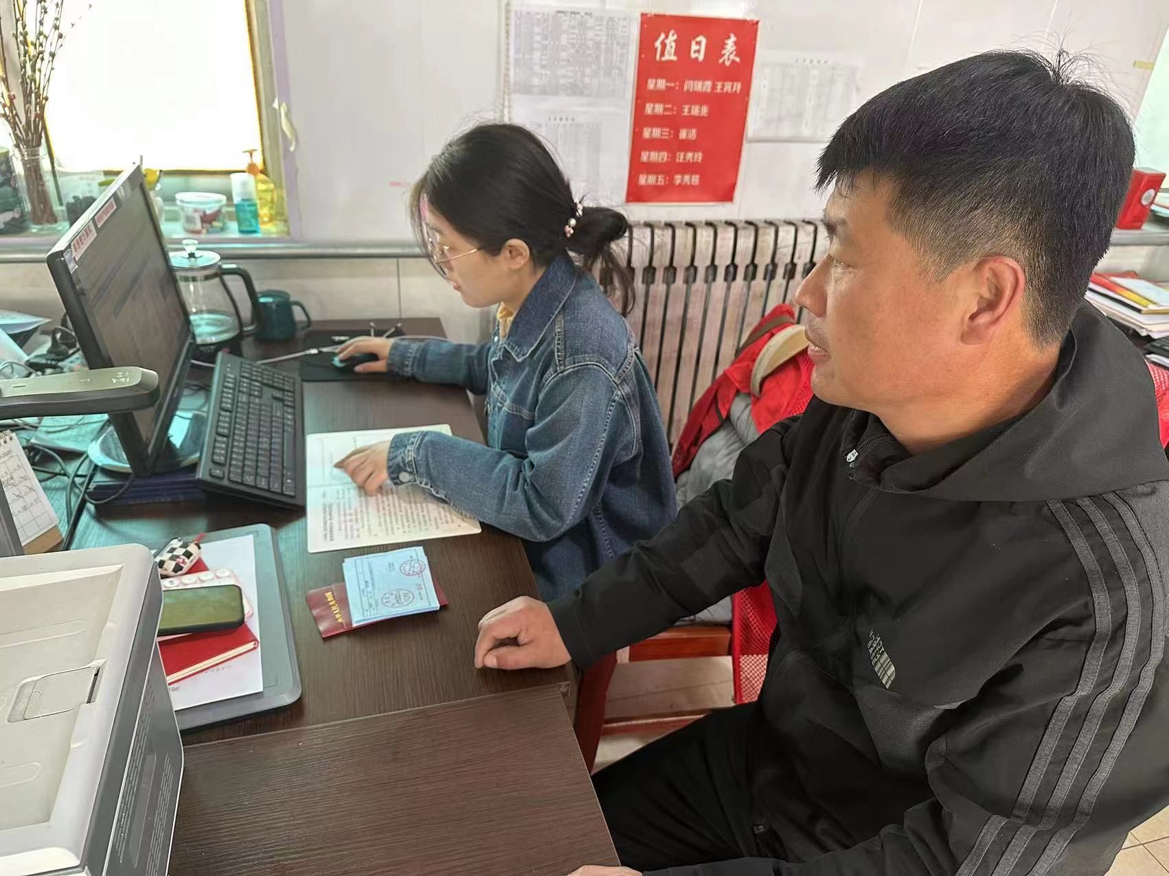 镇经管站的工作人员为前来办理贷款的村民填报有关资料,并上传农村产权交易平台,帮助村民成功贷款1万元。