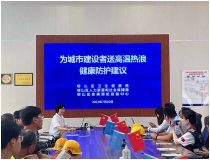 齐鲁网·闪电新闻7月25日讯 (山东台综合广播 马秀明)为普及夏季高温热浪健康防护知识,提升建筑工人等重点人群高温热浪健康防护意识和急救能力,近日,青岛市崂山区疾控中心、崂山区社会保险事业中心、崂山区建设工程管理服务中心等单位和部门联合走进青建集团股份公司山东头社区村庄改造项目工地开展健康知识和工伤保险政策宣讲活动,为城市建设者送去一份高温热浪防护“清凉礼包”。
