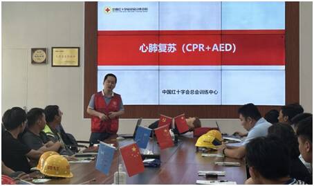 针对极端情况下可能出现的心脏骤停等情况,青岛市崂山区红十字会专职讲师刘伟以“心肺复苏(CPR+AED)”为主题详细讲解了紧急情况下如何判别心脏骤停,以及当遇到人员心脏骤停时如何采取正确的心肺复苏急救措施。在讲座过程中老师边讲解边使用模拟人进行教学演示,生动形象地展示了心肺复苏的重要步骤以及AED的使用方法,并对大家提出的急救问题进行一一解答。活动现场,工作人员向建筑工人发放了高温热浪健康防护和工伤保险知识宣传材料。