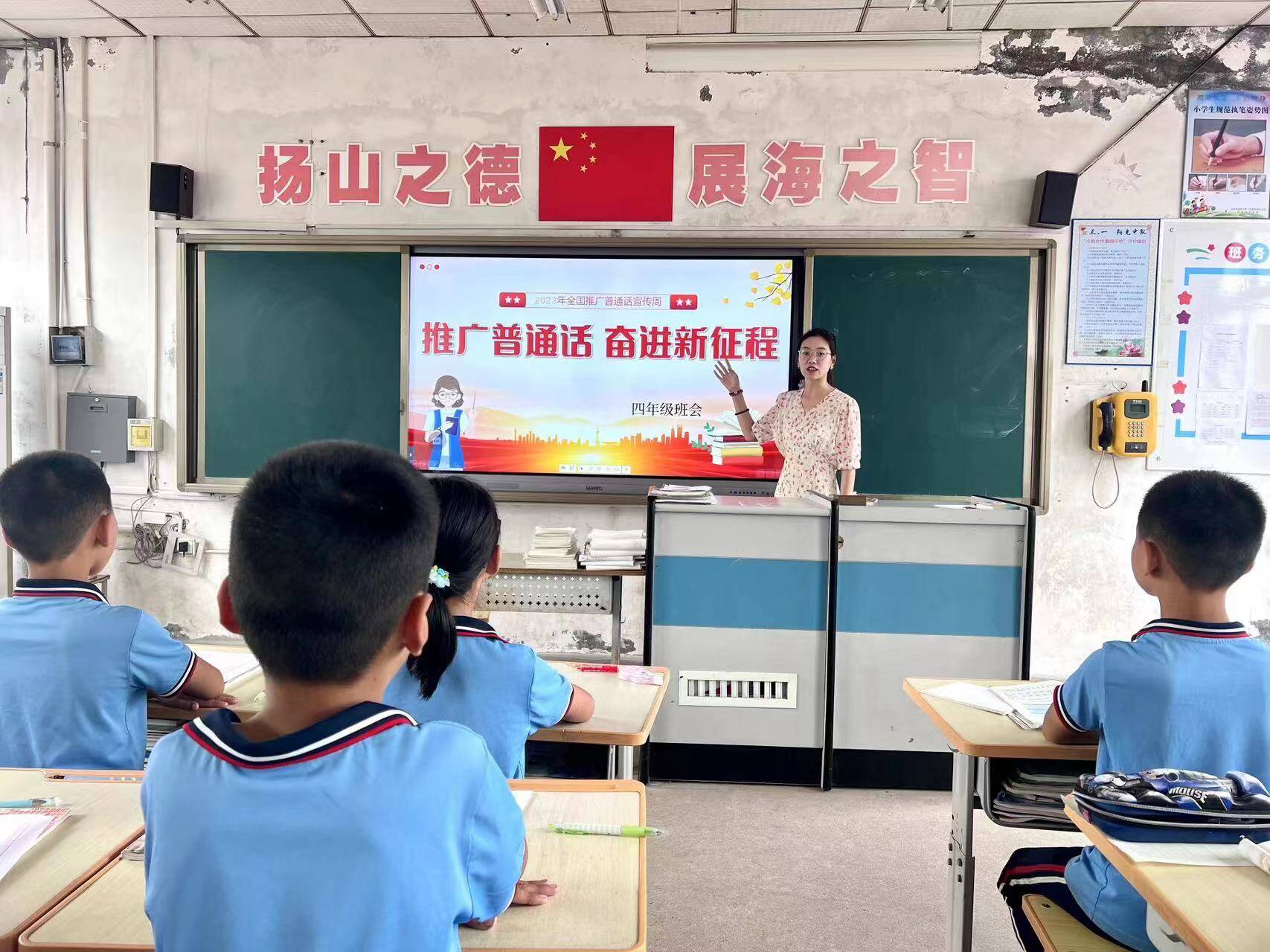 在海阳市辛安第二中心小学,各班召开了”推广普通话“主题班会,为学生讲解普通话的含义及运用普通话的意义。