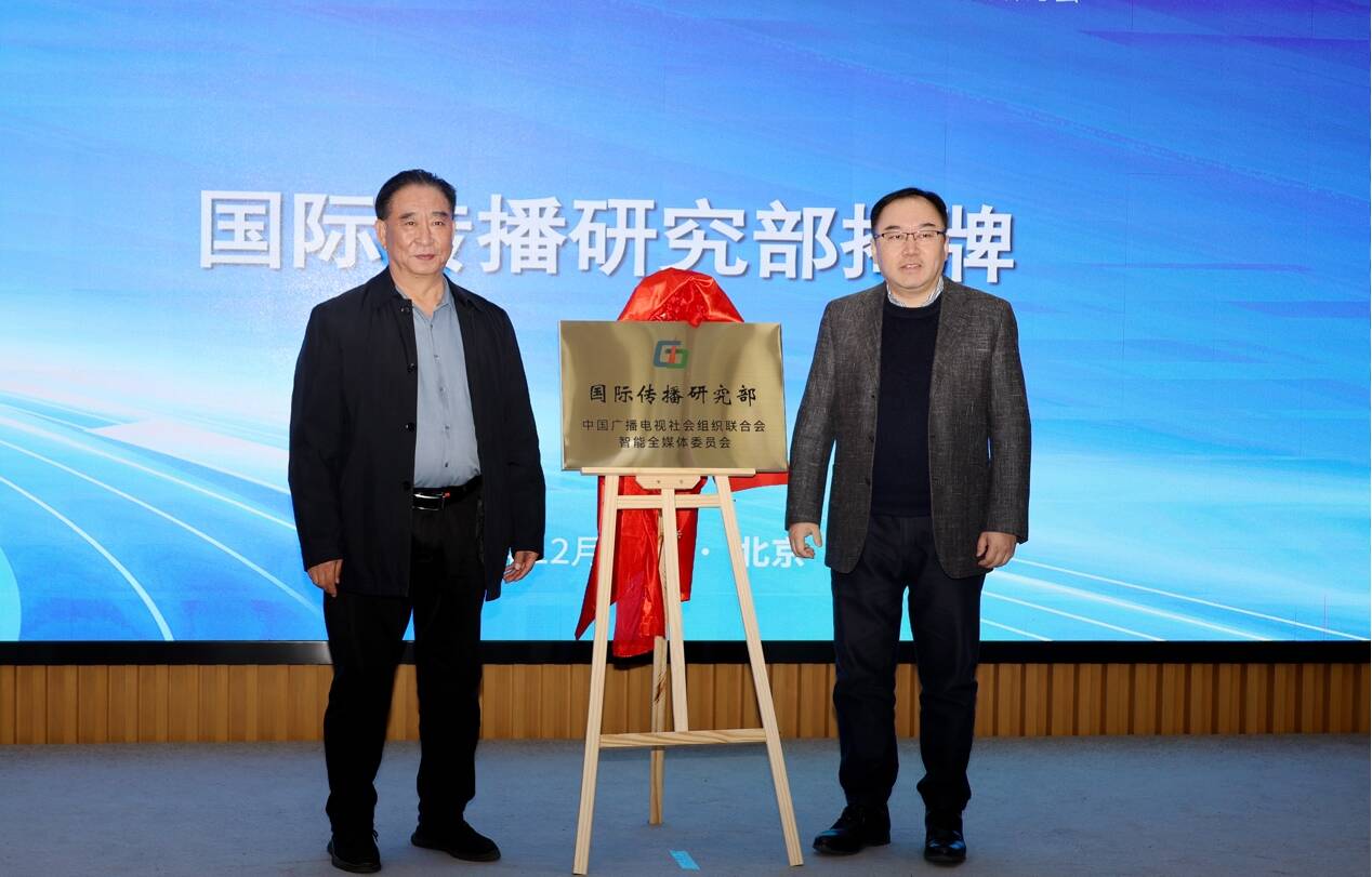 中广联合会智能全媒体委员会会长辛如记与深圳雅文信息传播有限公司总经理王政共同为“智媒委国际传播研究部”揭牌。