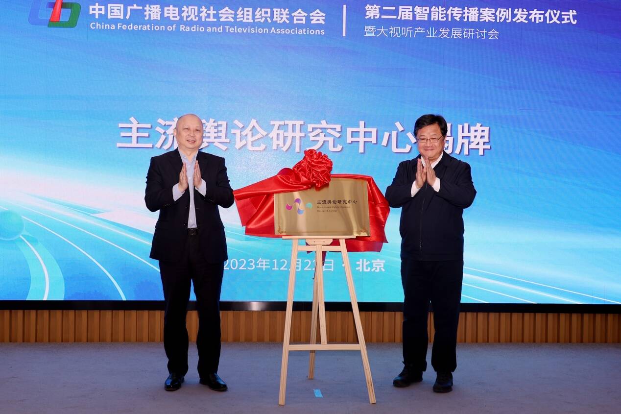 中广联合会智能全媒体委员会副会长兼秘书长李永刚与北京印刷学院新闻传播学院院长魏超共同为“主流舆论研究中心”揭牌。主流舆论研究中心由双方共同发起成立,将凝聚更多力量参与共建,为共创主流舆论新格局做好咨政建言、社会服务、理论创新和实践探索。