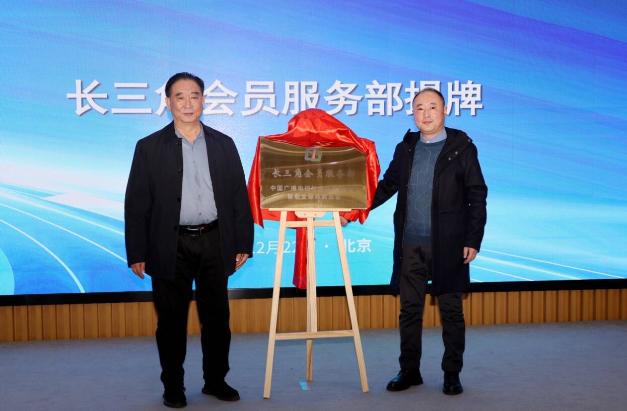 中广联合会智能全媒体委员会会长辛如记与广智媒会展(上海)有限责任公司董事长胡兵共同为“智媒委长三角会员服务部”揭牌。