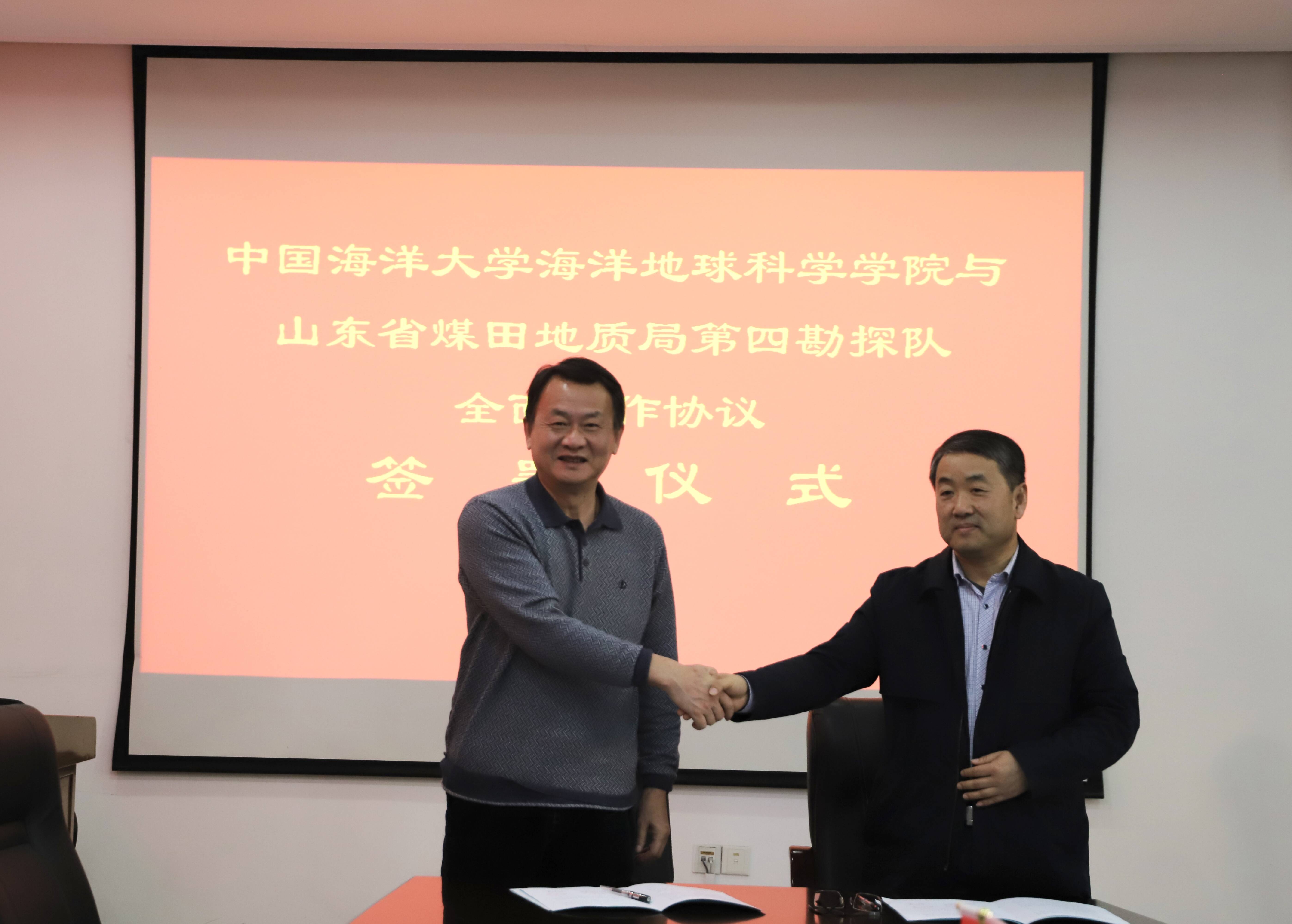 在中国海洋大学崂山校区,地球科学学院党委书记吴军,副院长乔璐璐、毕乃风与石相军一行亲切交谈,双方分别介绍了各自单位的基本情况、人才培养体系、未来发展方向, 签订了“政产学研用”全面合作协议,并向海大学子进行了宣传推介。