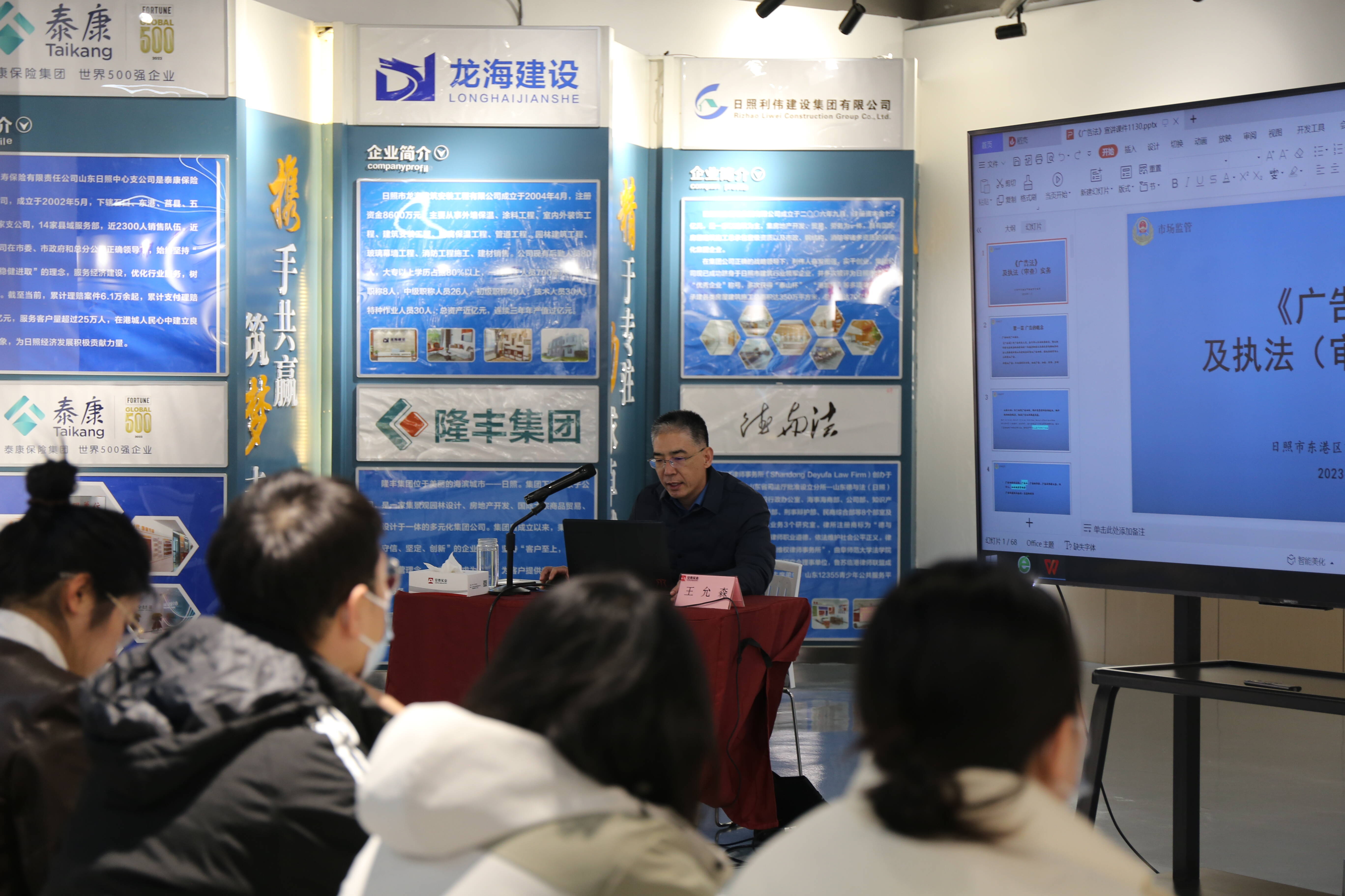 齐鲁网·闪电新闻12月5日讯 近日,日照市东港区秦楼街道在安泰党群服务中心开展普法活动。此次活动以“学习广告法规 共建诚信社会”为主题,并特别邀请东港区市场监管局广告监督管理科科长王允森现场授课。