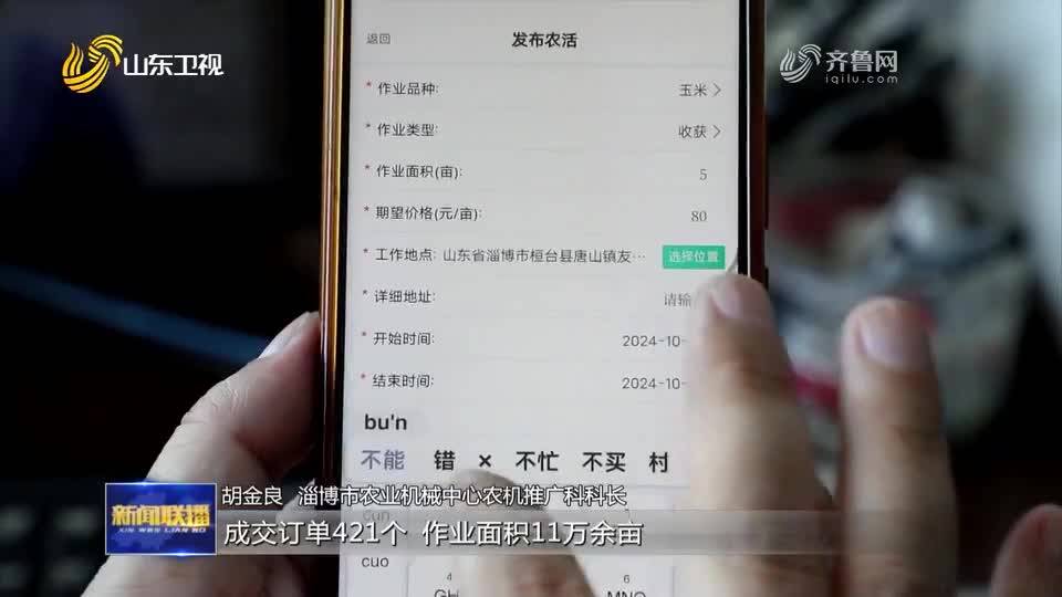 淄博市农业机械中心农机推广科科长胡金良说:“成交订单421个,作业面积11万余亩,为农业生产经营组织和小农户提供了低成本、便利化、全方位信息服务。 ”
