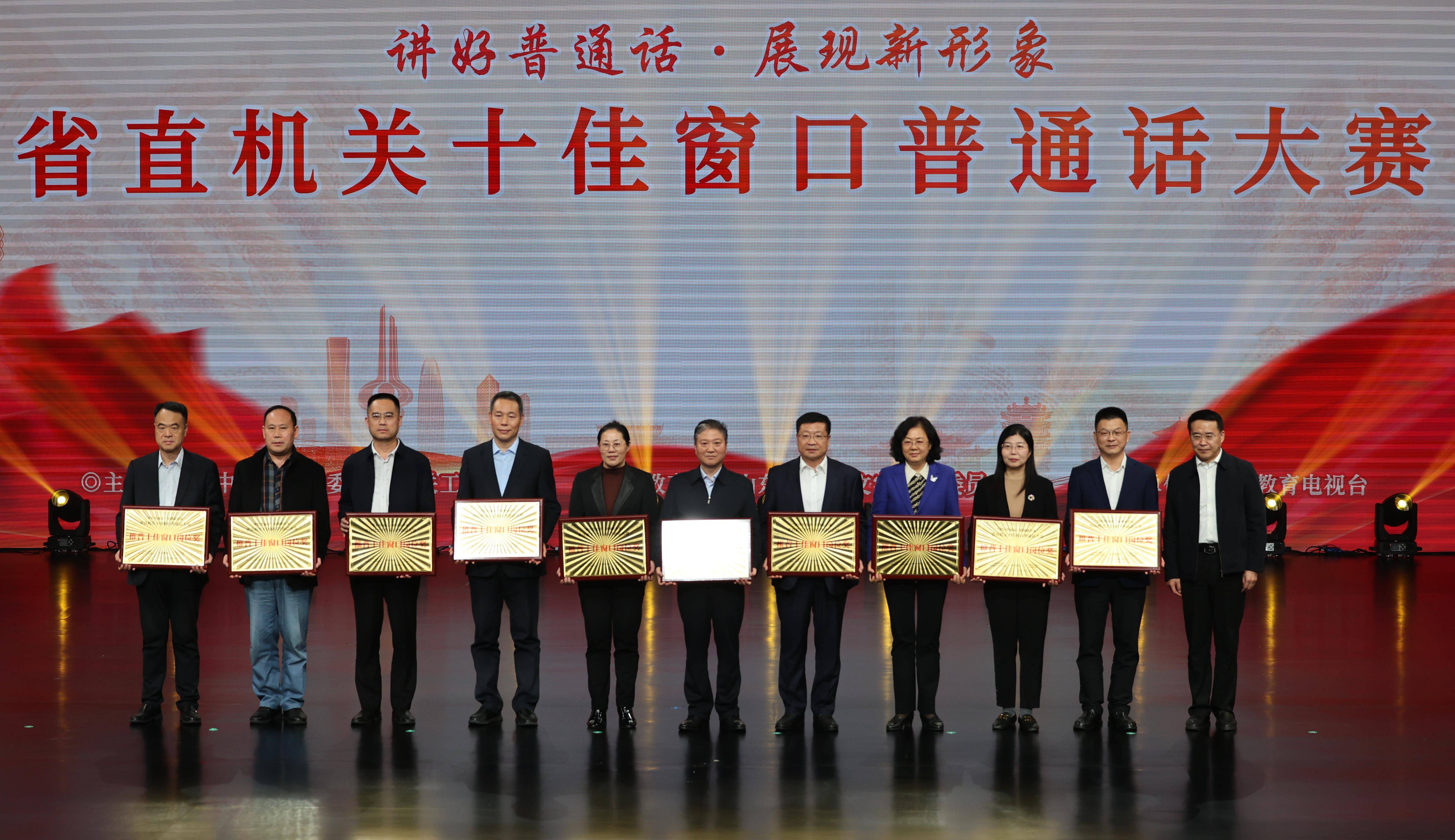 齐鲁网·闪电新闻10月29日讯 10月29日下午,“讲好普通话·展现新形象”省直机关十佳窗口普通话大赛决赛在山东省教育卫视演播大厅成功举办。此次大赛由中共山东省委省直机关工作委员会、山东省教育厅和山东省语言文字工作委员会共同主办。山东广播电视台《问政山东》主持人、督办员李莎经过层层较量以优异成绩获得冠军。经组委会评选山东广播电视台荣获“推普十佳窗口岗位奖”。