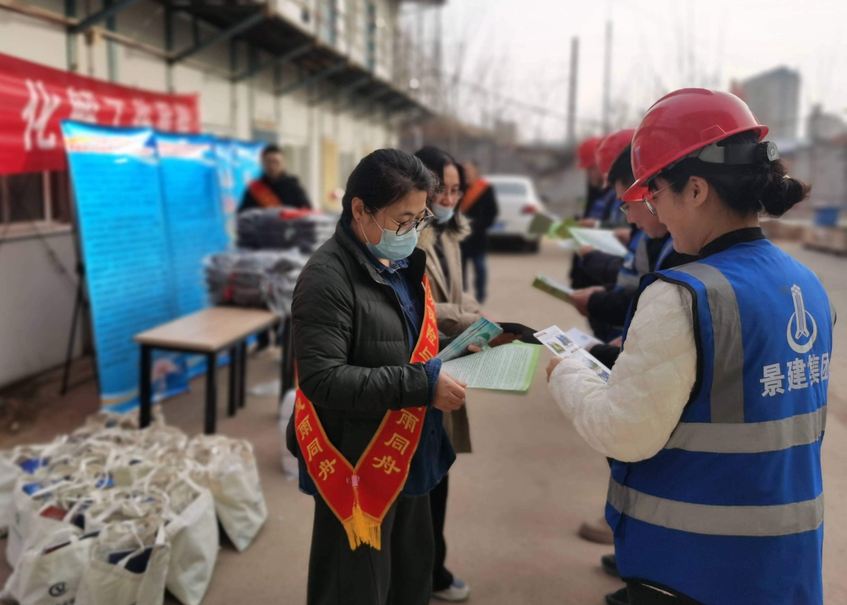 活动现场,工作人员向建设工地工作人员详细讲解了工伤保险政策法规和工伤预防知识,积极回答关心的问题,并发放劳保手套以及印有工伤宣传标语的广告衫、宣传抽纸、业务指南、宣传资料等物品,并现场张贴了工伤预防宣传标语,制作了移动宣传栏,受到建筑工人的好评。