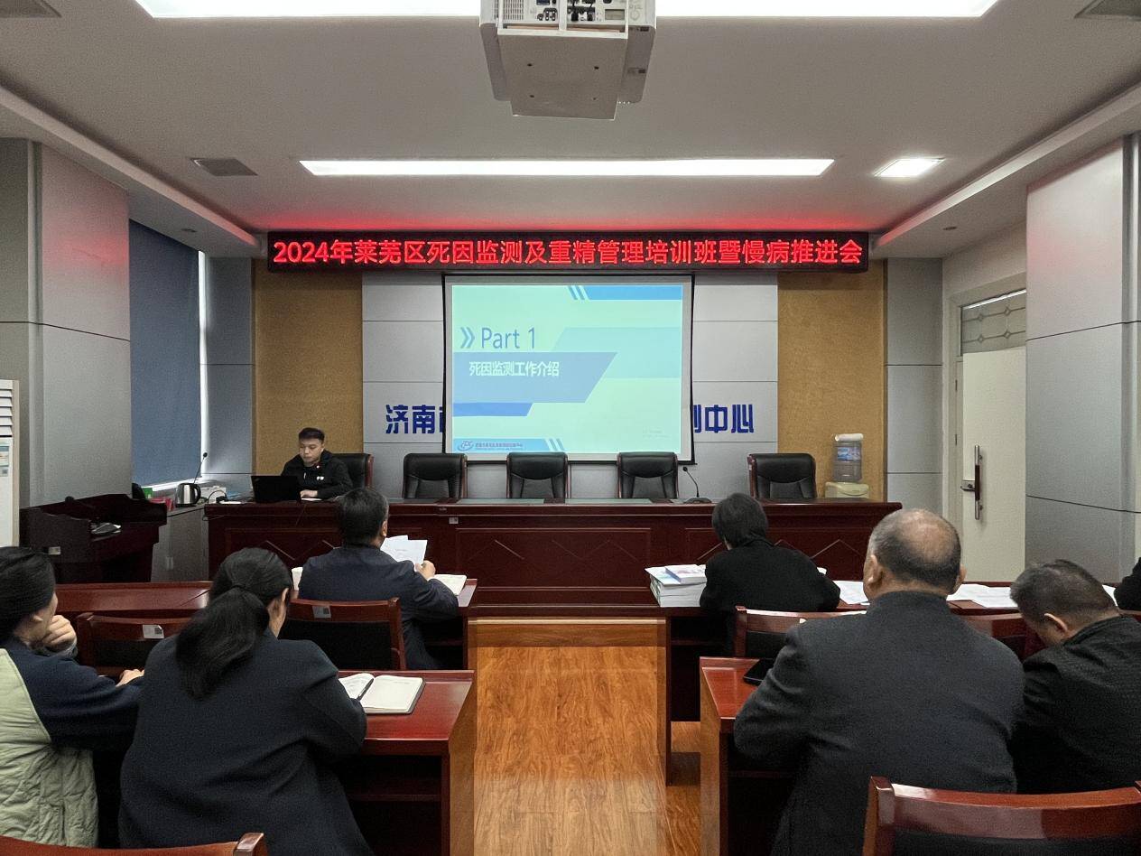 齐鲁网·闪电新闻11月16日讯 为提高全区死因报告数据质量、规范死亡证明书填写,提升全区严重精神障碍患者管理工作的质量和水平,进一步加强全区慢性病综合防控能力建设,11月15日,济南市莱芜区疾病预防控制中心举办莱芜区死因监测及重精管理培训班暨慢病推进会。