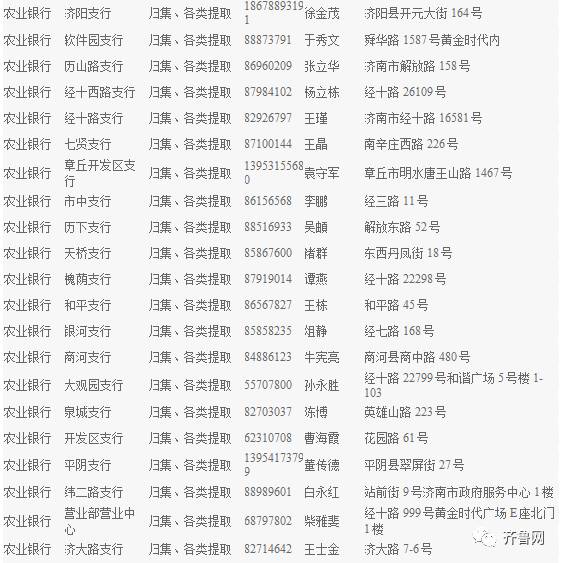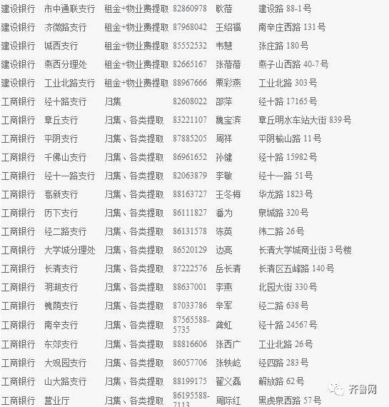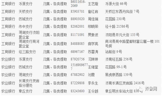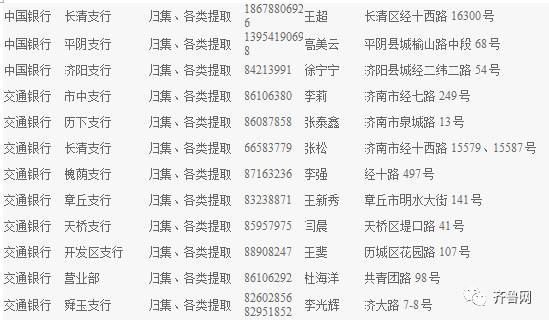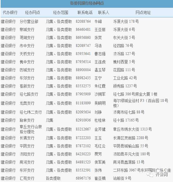 济南各银行经办网点↓↓↓