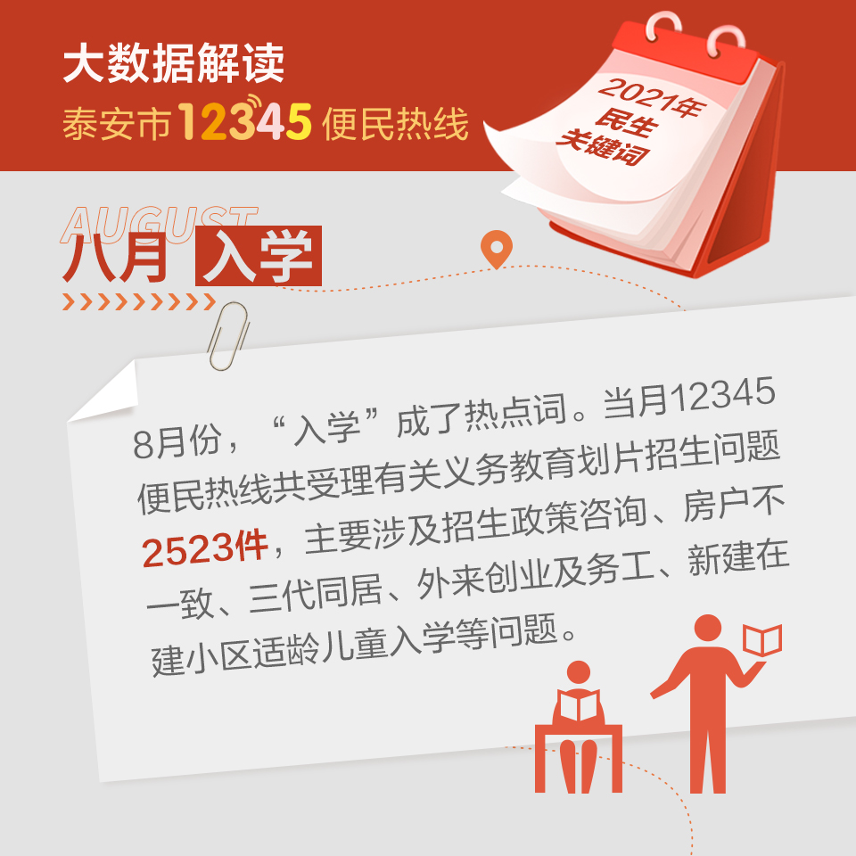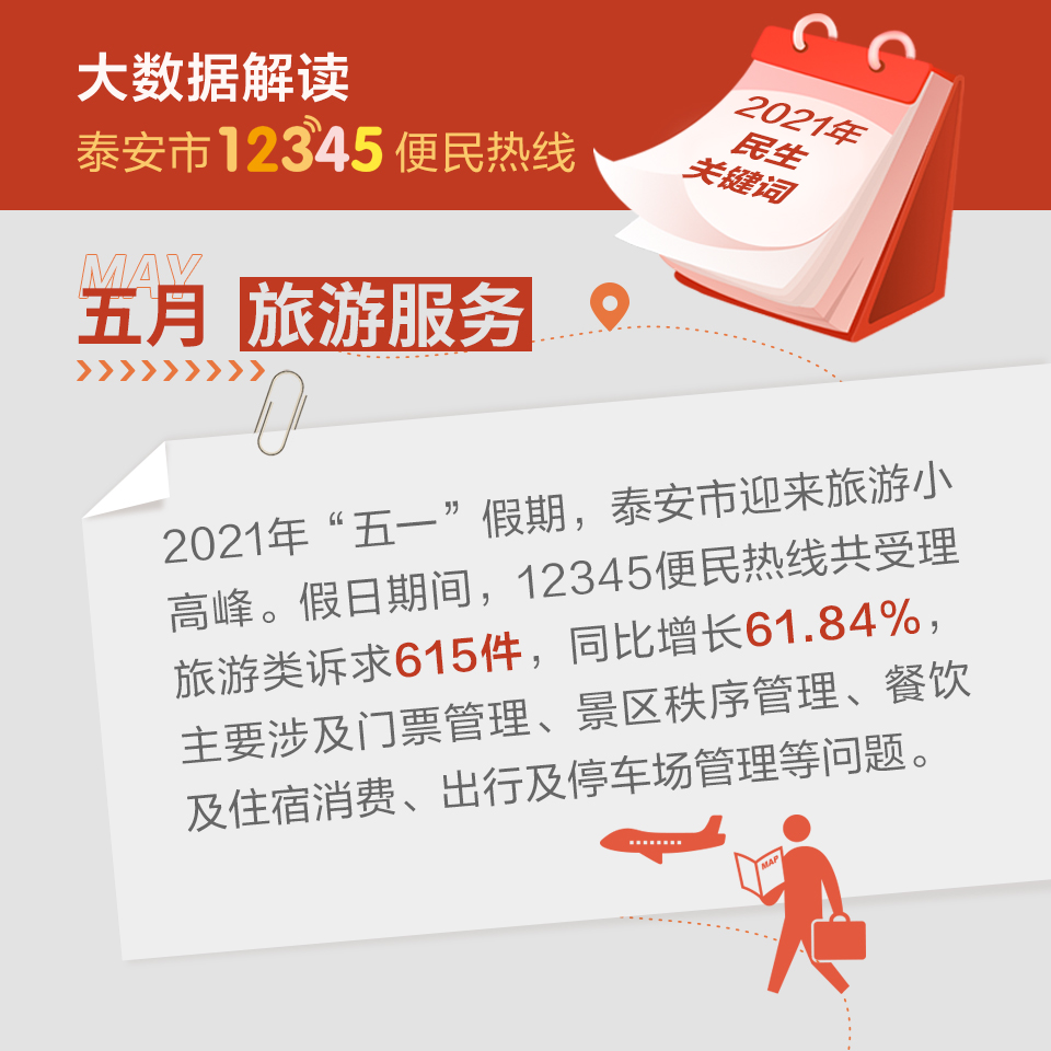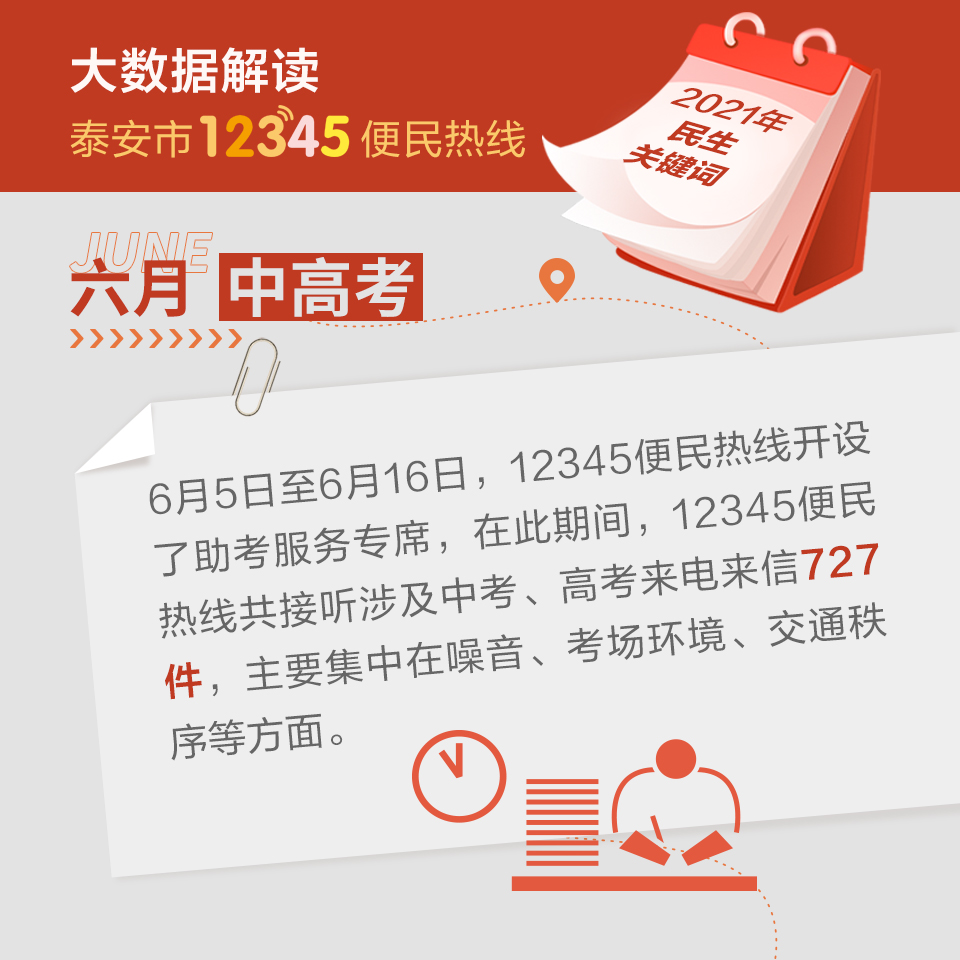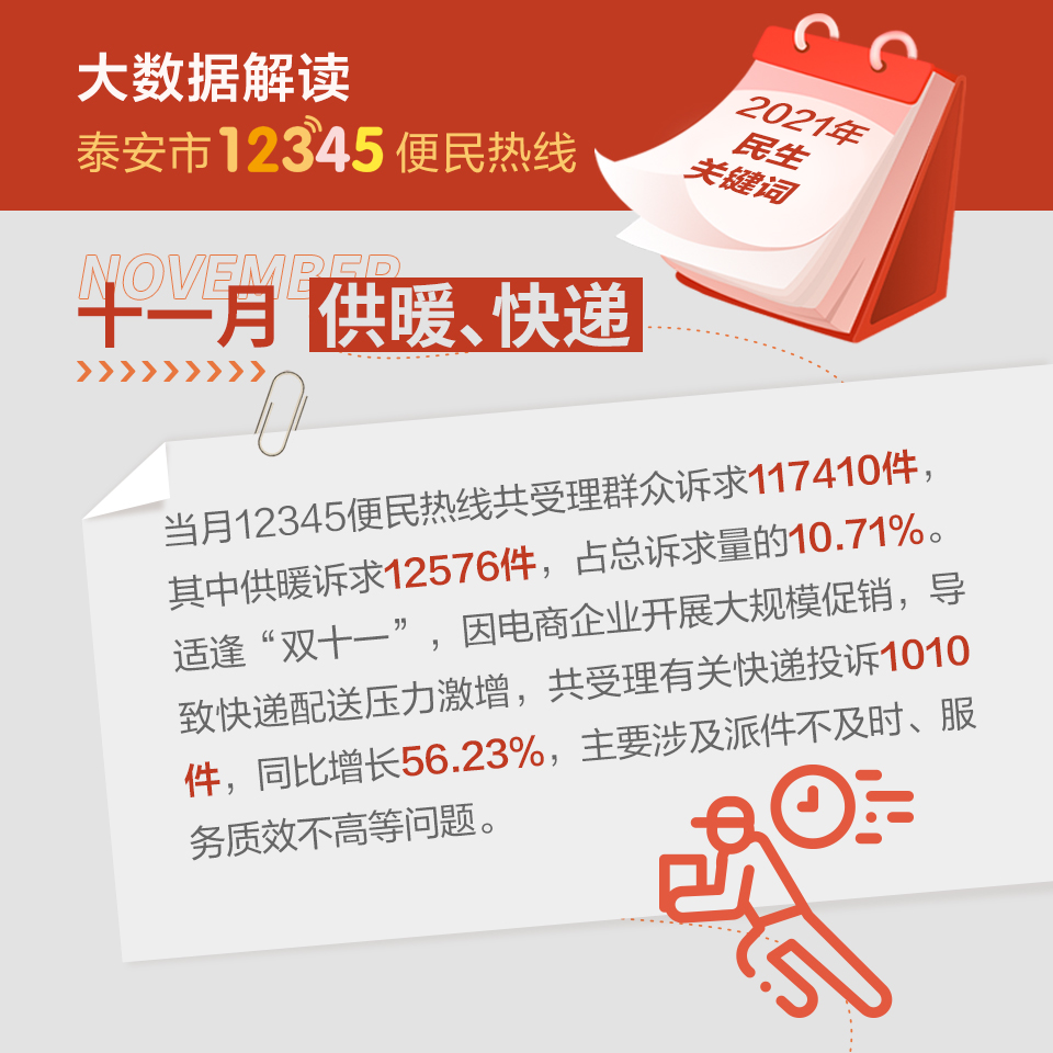 帮助农民工讨薪,答复疫苗接种问题,解答划片入学问题,回复游客关于购票、疫情防控、停车等各类咨询……据12345便民热线受理平台统计,2021年热线共受理群众诉求126.65万件,同比增长49.07%。泰安市民关心的问题都有哪些?12345便民热线运用大数据盘点2021年每月的“民生关键词”。【泰安日报社·最泰安全媒体记者 徐文莉 毛洁 编辑 王婷婷 设计 石帆】