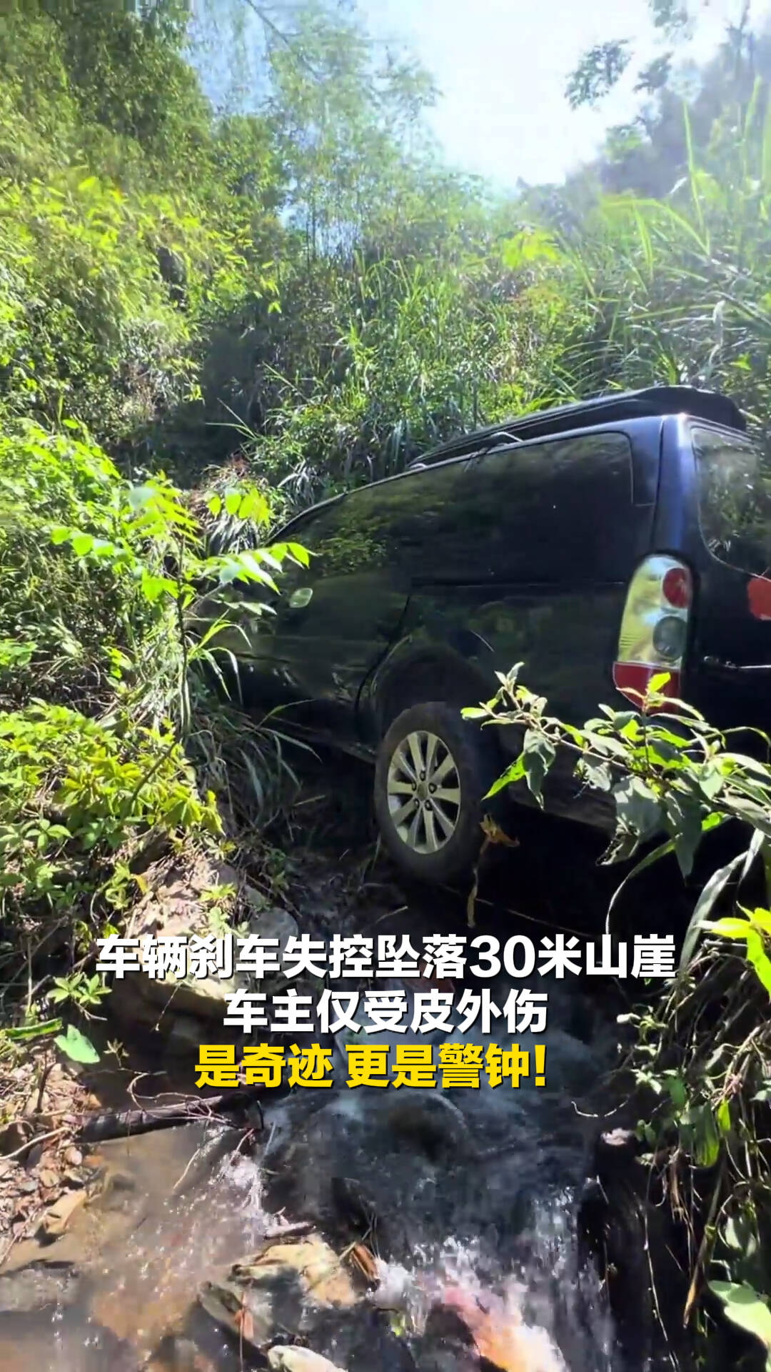 车辆刹车失控坠落30米山崖 车主仅受皮外伤 是奇迹 更是警钟!