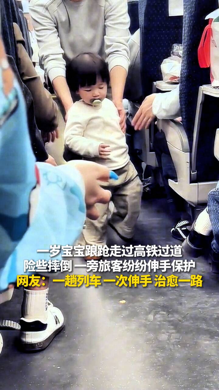 一岁宝宝踉跄走过高铁过道 险些摔倒 一旁旅客纷纷伸手保护 网友:一趟列车 一次伸手 治愈一路