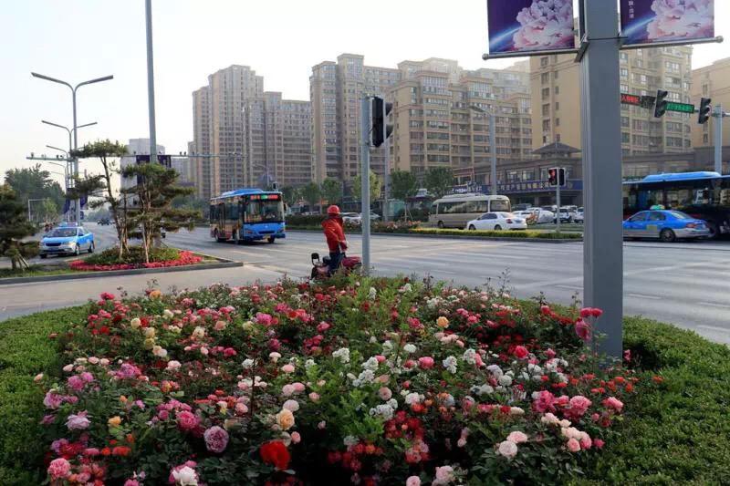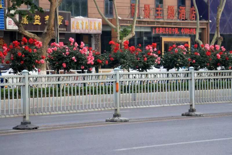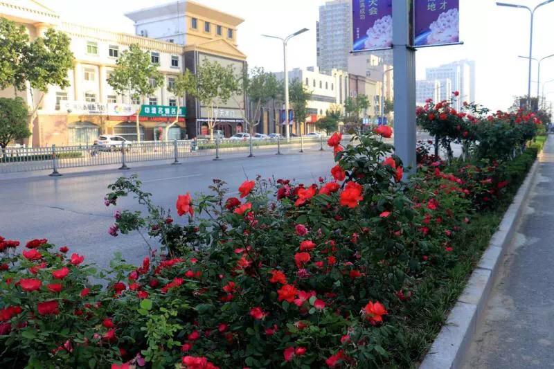 现在,高杆和丰花月季,正在怒放,路口的矮化月季,五颜六色,清香四溢,让路人啧啧称赞。