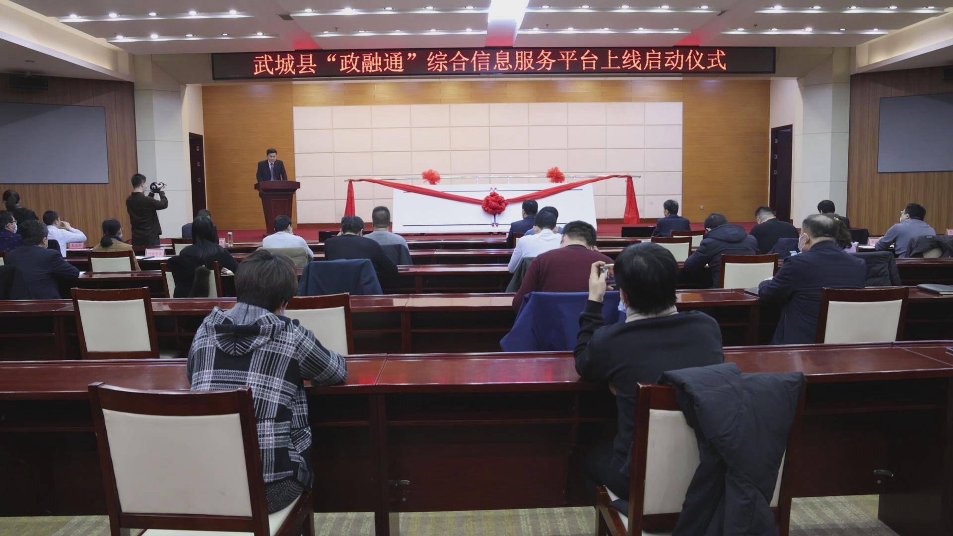 齐鲁网·闪电新闻12月26日讯 12月25日,德州市武城县“政融通”综合信息服务平台上线启动仪式举行。省财政厅三级调研员王文胜,市财政局四级调研员李耀国,武城县委副书记、县长朱恩鹤,县委常委、常务副县长杜文陆,县委常委、县统战部部长韩以广参加。
