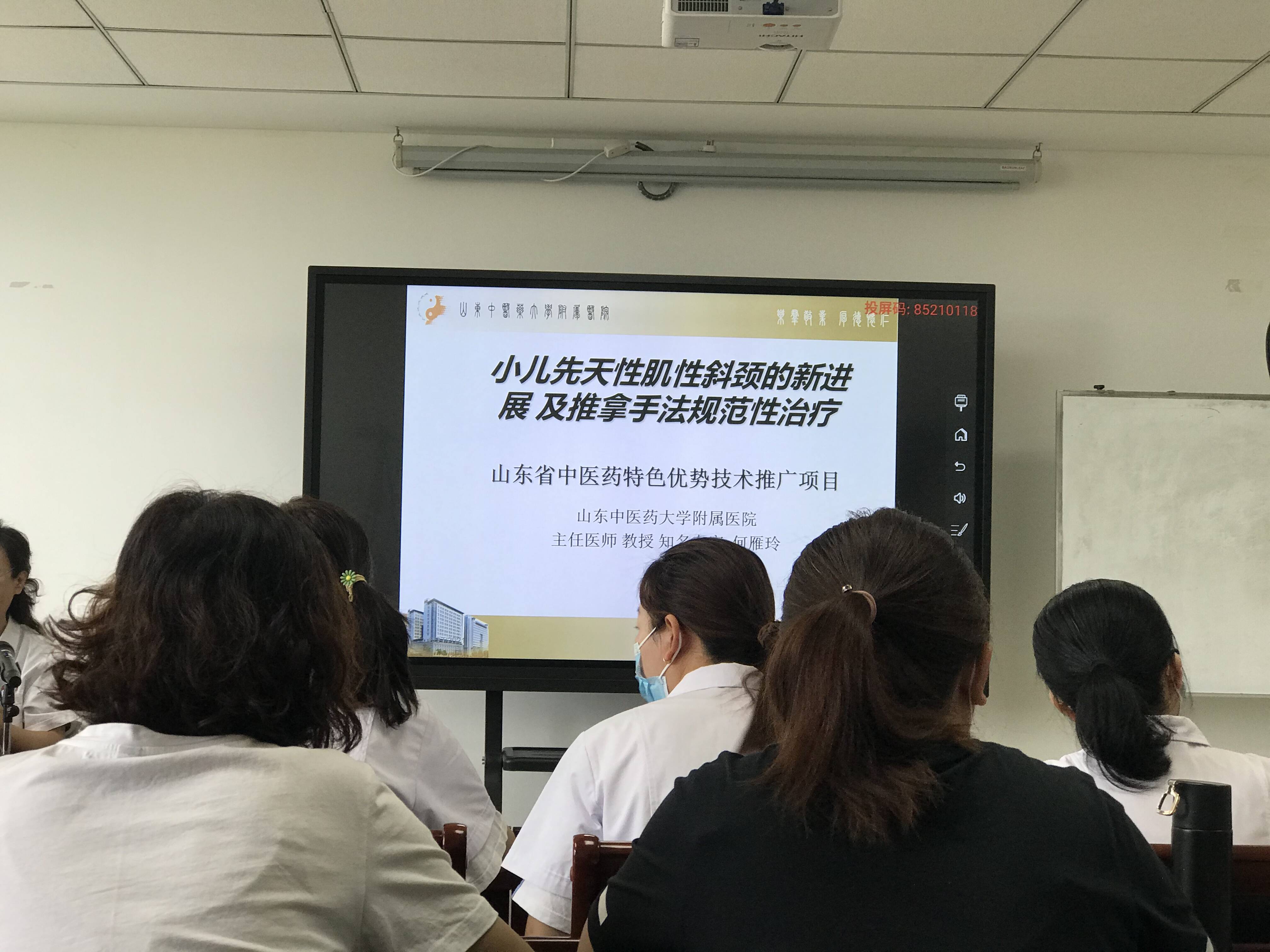 会议安排山东中医药大学附属医院于娟主任、何雁玲主任、姚笑主任分别围绕“四明穴防治儿童青少年近视推拿技术操作规范”“孙重三流派推拿治疗小儿肌性斜颈操作规范” “孙重三流派‘十三大手法’治疗儿童功能性便秘特色技术操作规范”等方面作了专题培训。并针对儿童青少年近视、小儿肌性斜颈、儿童功能性便秘等疾病的推拿手法、技术规范进行了线上实操示范。