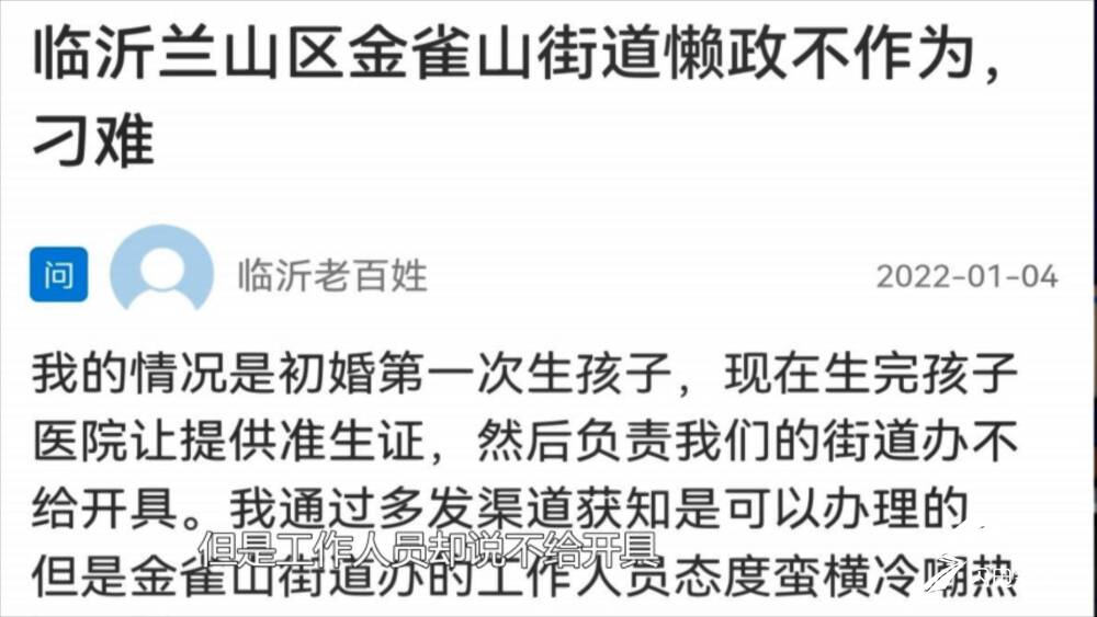 齐鲁网·闪电新闻1月28日讯 临沂的一位网友,在《问政山东》网络问政平台留言:第一次生孩子,没有办证经验。生完孩子后医院让提供准生证,自己去街道补办,工作人员却不给开具。