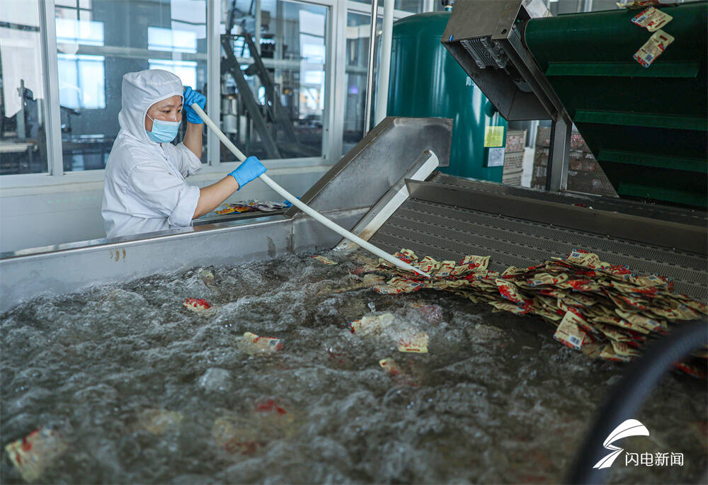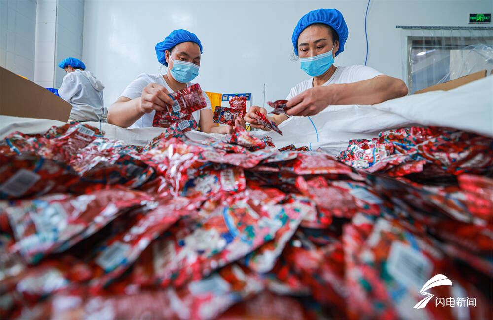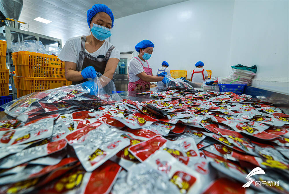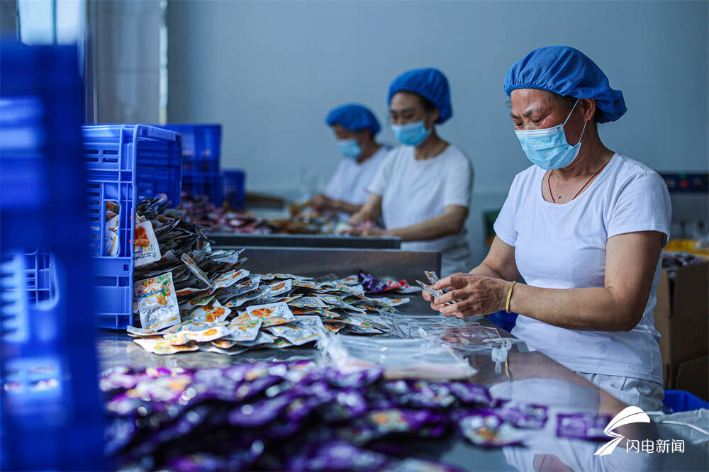 齐鲁网·闪电新闻7月11日讯 日前,在荣成市俚岛镇一家海洋食品加工企业,工人们在生产线上忙碌着,加工、包装发往全国各地的订单。